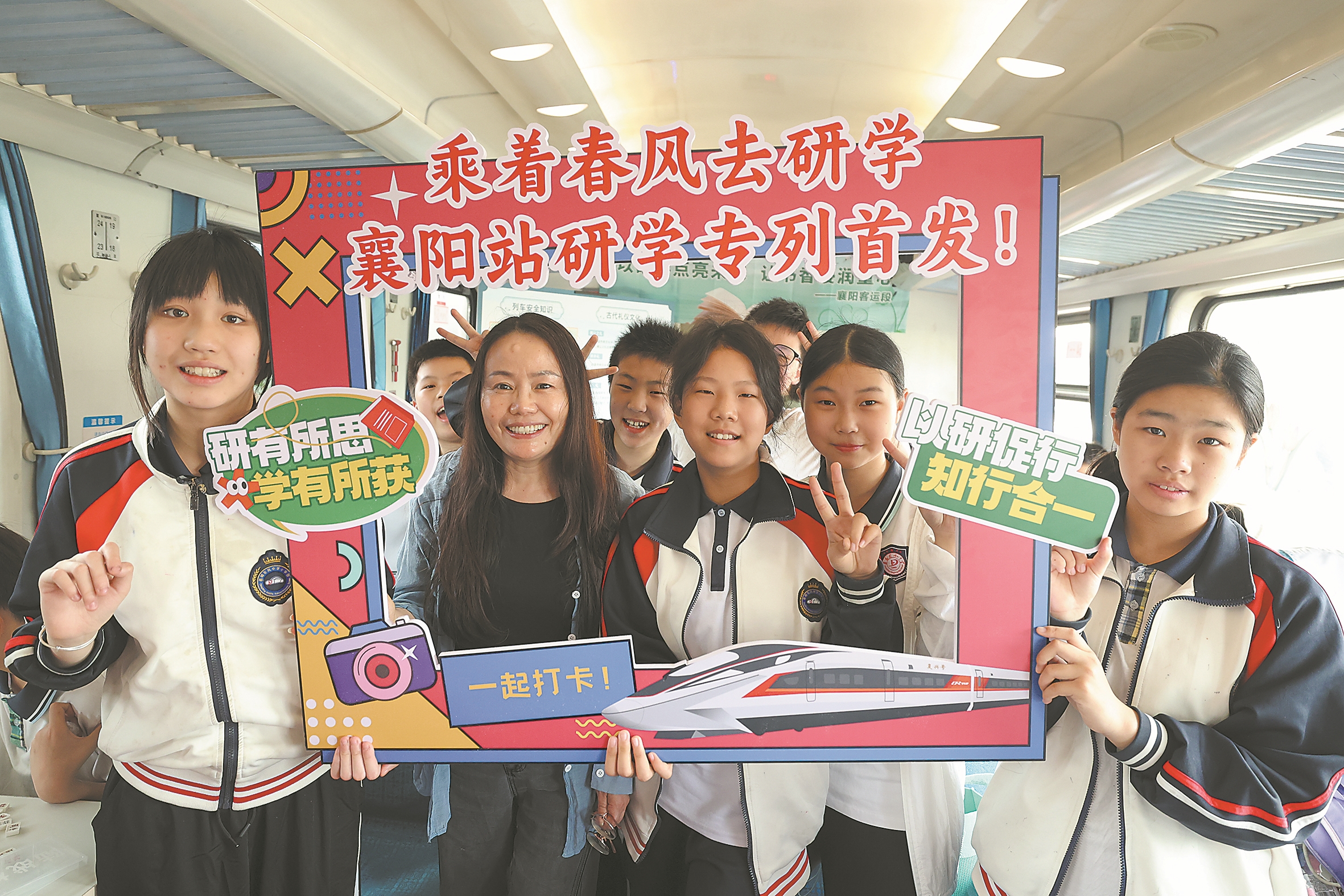 武铁襄阳车站副站长杨跃明介绍,此次专列是襄阳铁路部门今年开行的首趟研学专列,每个环节均融入文化元素与互动设计,开创“交通+教育”服务新模式。后续计划加开5至10趟研学、银发等旅游专列,把襄州站打造成“铁路+旅游+研学”专属车站,推动“行走的课堂”迭代升级。