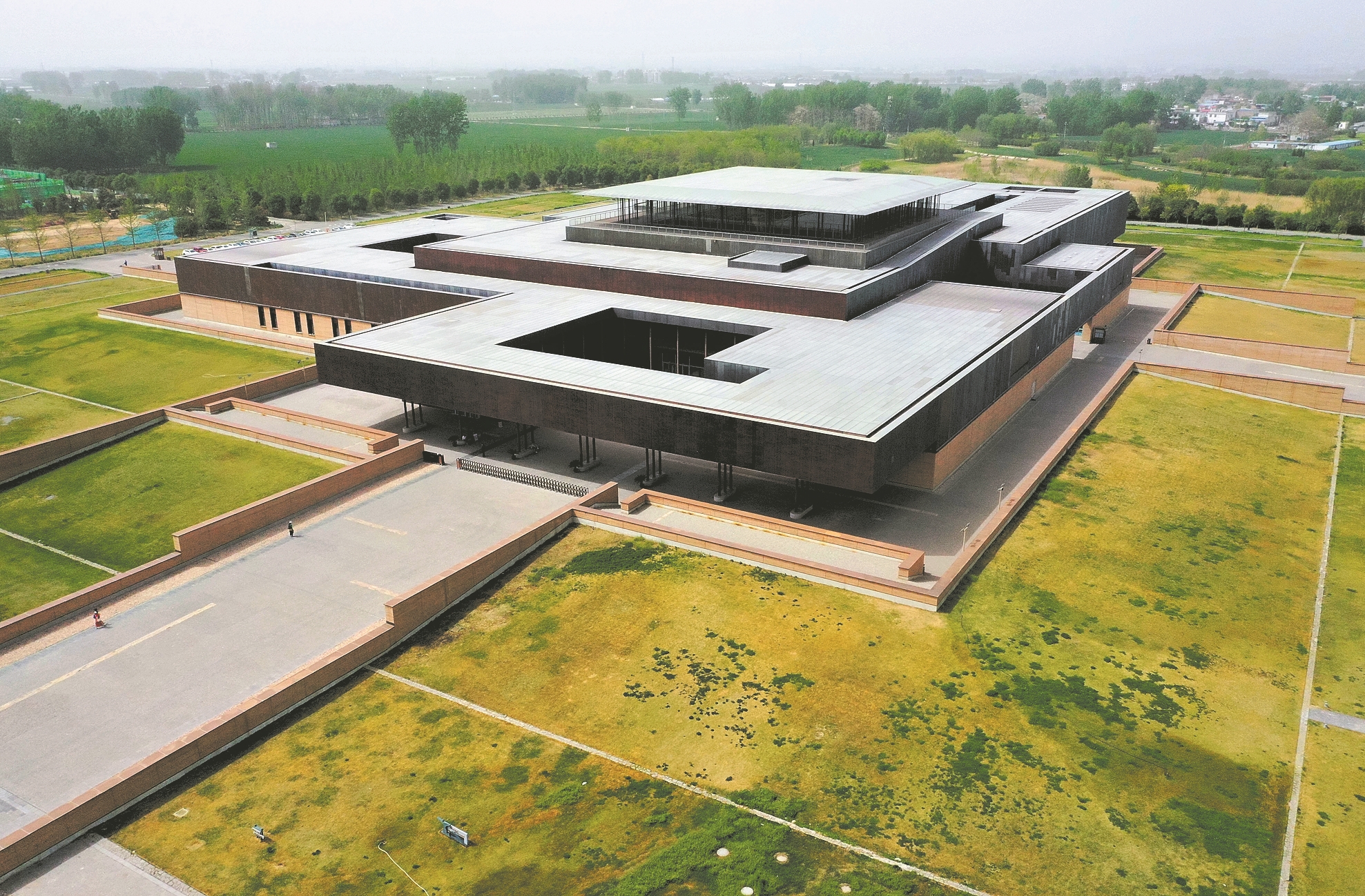 从空中俯瞰,二里头夏都遗址博物馆旁,国家夏商文明考古研究中心正在建设,其屋顶轮廓已初步显露出汉字“源”的形状——寓意中华王朝文明的起源。