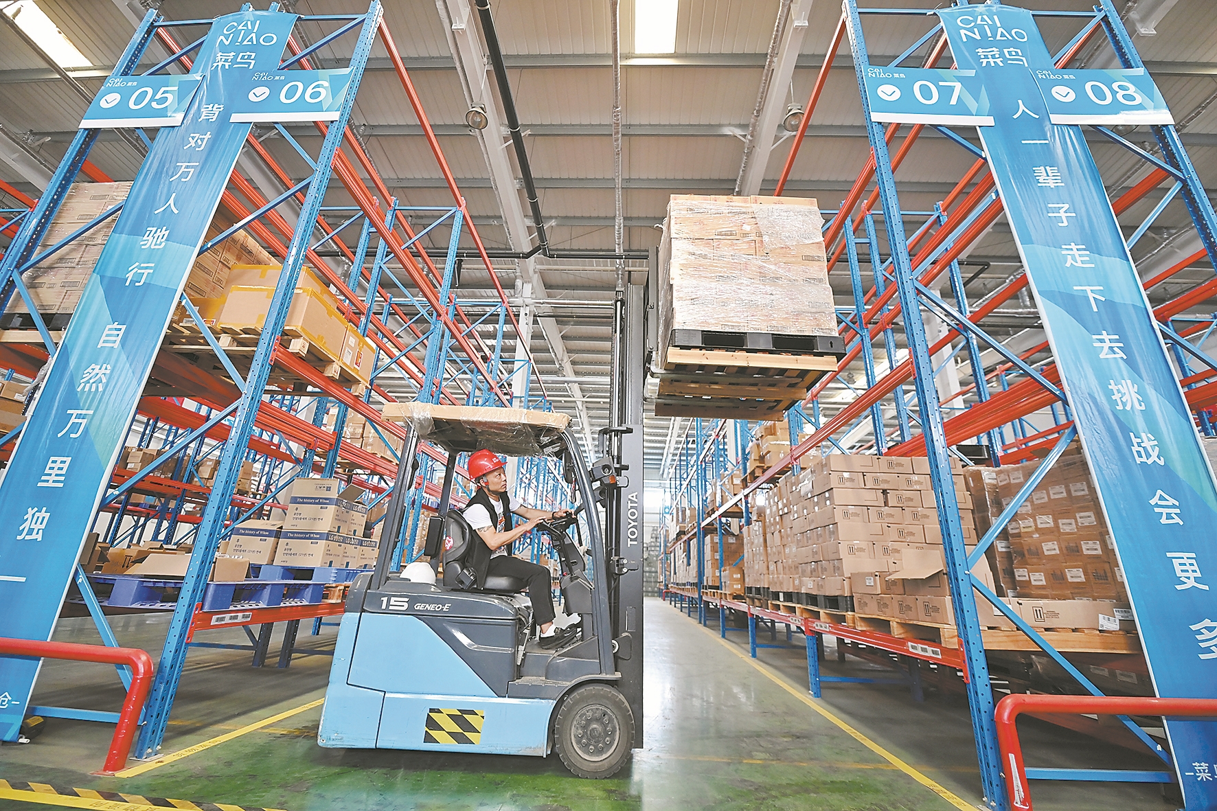 4月23日,工人在襄阳综合保税区菜鸟跨境中心仓转运商品。该中心仓依托襄阳综合保税区开展跨境电商网购保税进口业务,襄阳人购买的进口商品最快次日可送达。