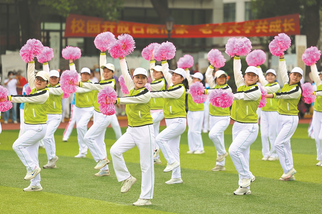 5月13日,市老年大学师生表演啦啦操。当天,市老年大学举办校园开放日活动,众多市民走进该校,“零距离”感受校园文化氛围。活动中,市老年大学师生进行教育成果展演,展现了新时代老年人乐学乐为、积极向上的精神风貌。
