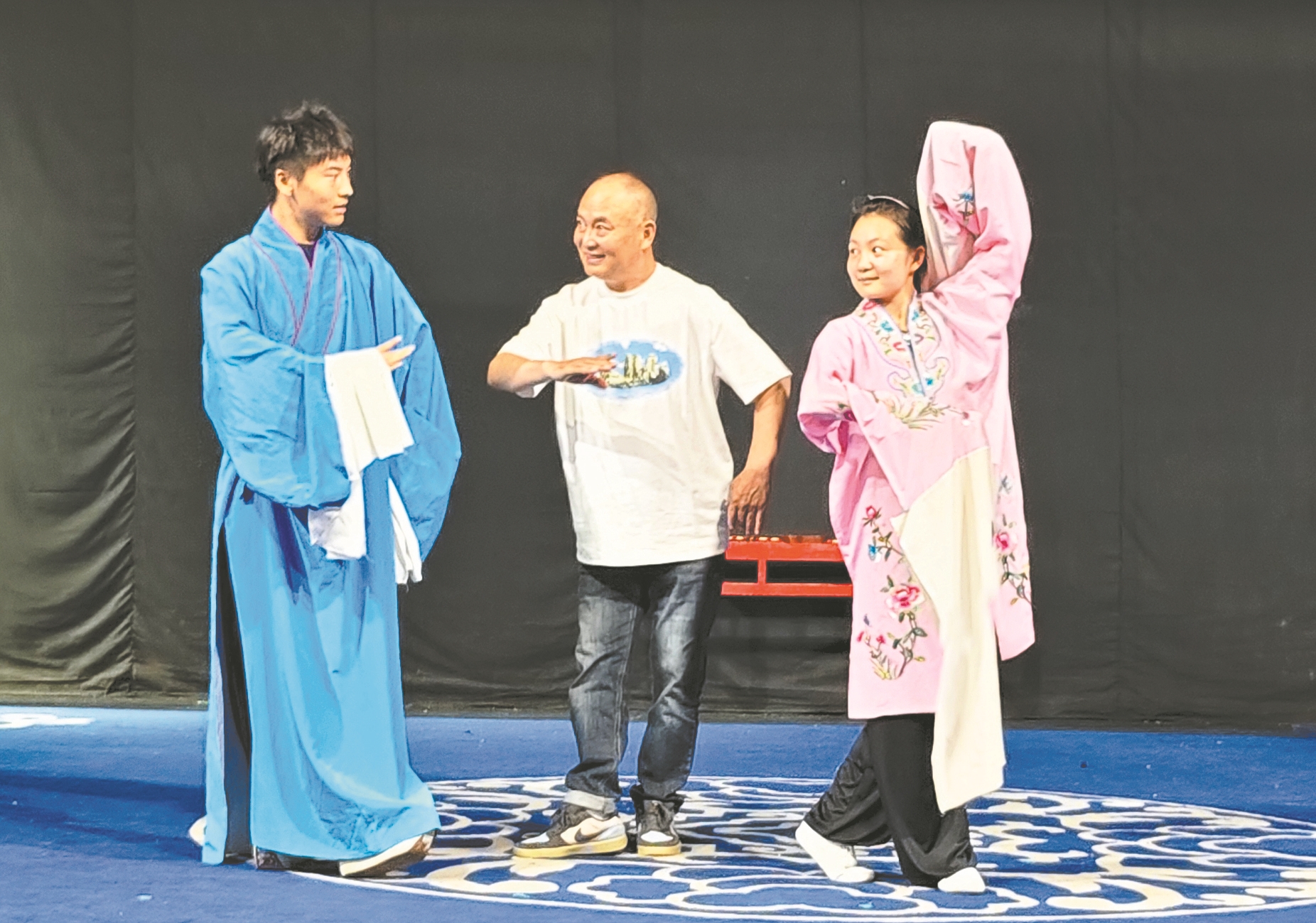 “生旦对唱如丝缠竹,许仙眉峰微蹙藏惊,白素贞眼尾笑意含慕。”5月9日上午,60岁的李华正带着市艺术学校的学生抠《游湖》里的对唱细节。说着,他左手虚握成“兰花指”,右手轻拂水袖,瞬间从许仙的含蓄转为白素贞的娇媚,声线也从温润的小生嗓切换为清亮的旦调。