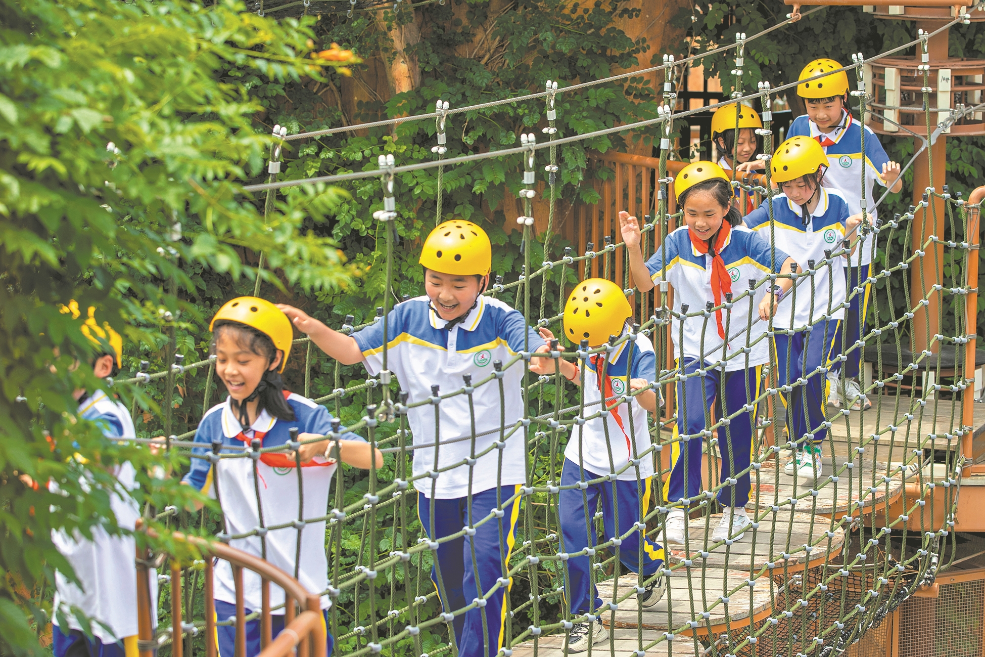 5月16日,市清河口小学组织学生走进襄阳华侨城奇趣童年亲子乐园,开展主题为“趣味体能·阳光成长”的研学活动,通过沉浸式体验户外体能项目,帮助学生缓解学习压力,提高团队协作能力。