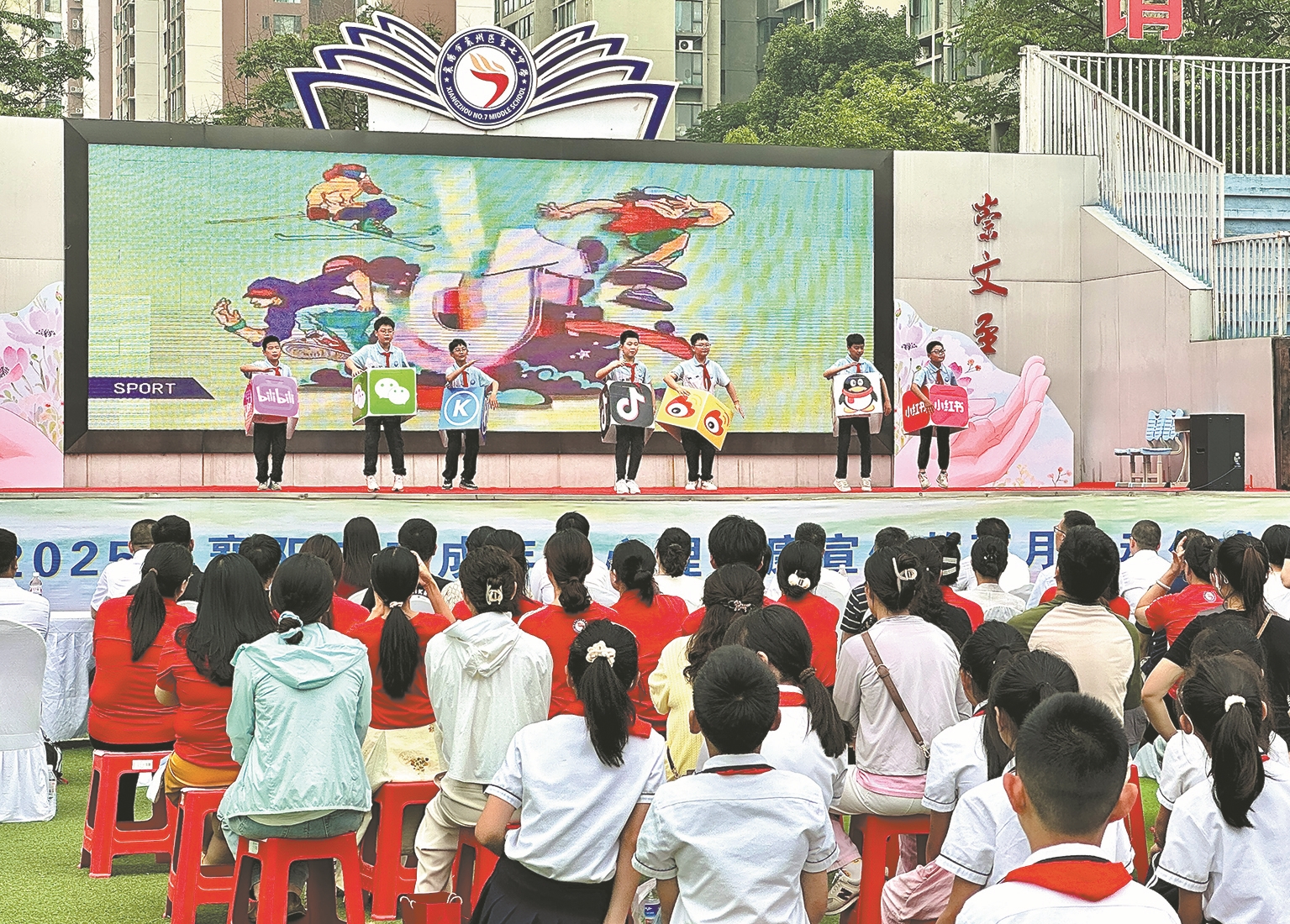 启动仪式在襄州七中带来的舞蹈表演《花开新时代》中拉开序幕,少年们拥抱未来、追逐梦想,手捧鲜花在舞台上轻盈跃动,绽放出耀眼的青春光芒;海容小学带来情景剧表演《滚蛋吧,拖延君》,“游戏恶魔”“手机妖怪”相互缠斗的创意编排以及诙谐幽默的语言,引得在场学生开怀大笑;襄阳市第八中学演绎的心理剧《面具》,讲述一个“讨好型人格”女孩从迷失到觉醒的成长故事,探讨青春期自我认同的深刻话题。