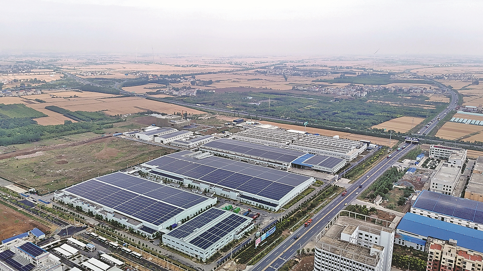 近日拍摄的襄州区际华三五四二纺织产业园,新投资建设的智能化纺丝车间正在加紧施工。