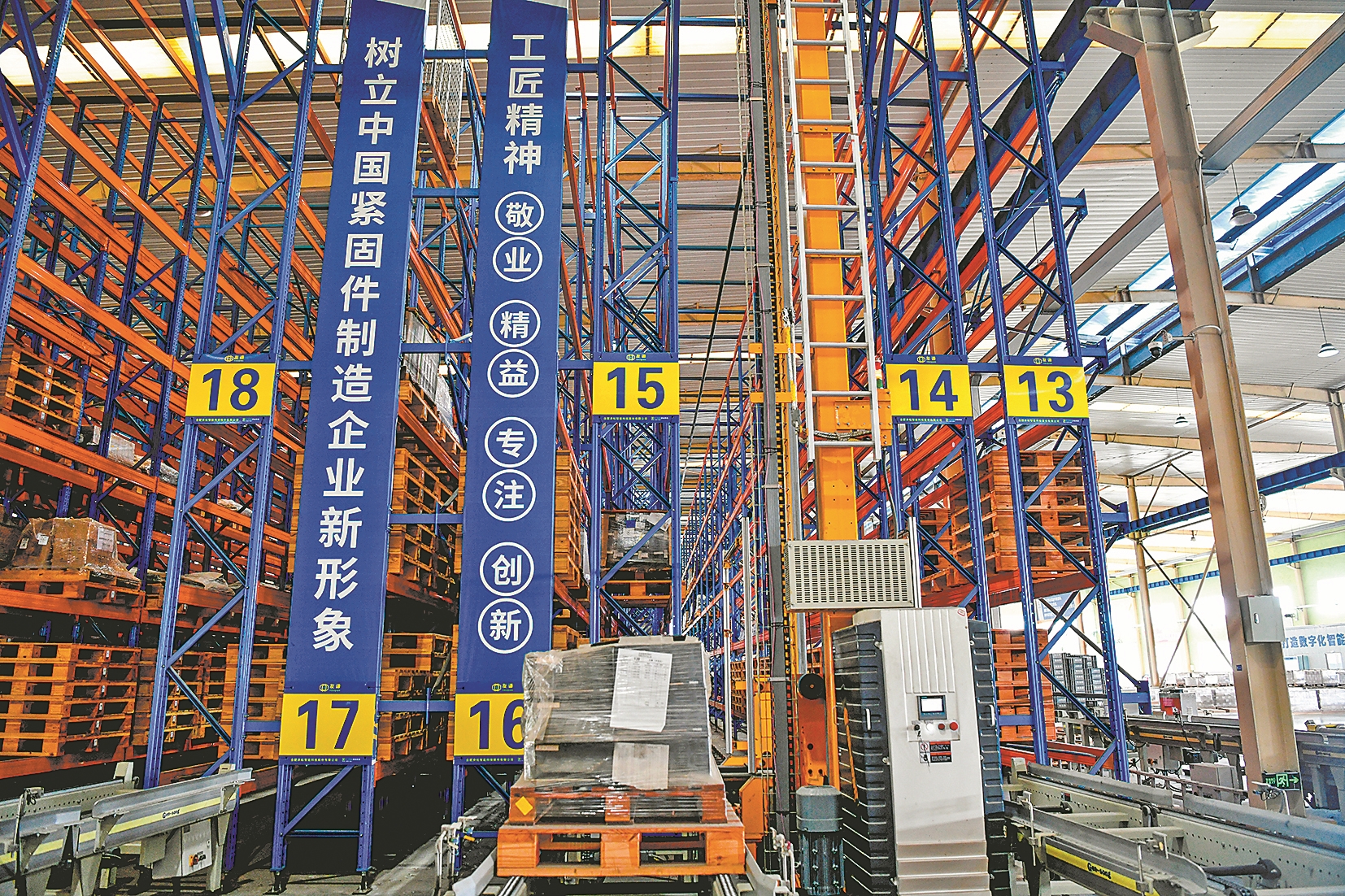6月12日,在位于宜城市的湖北友谦汽车零部件有限公司,一批成品正进入自动化仓库。