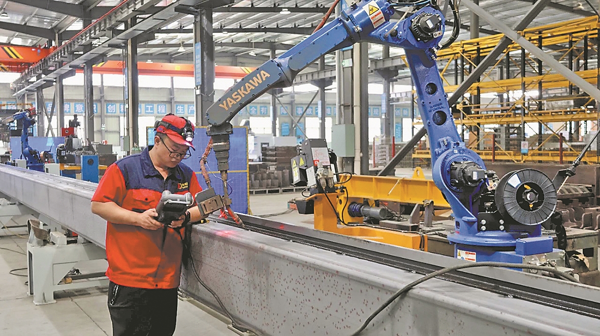 襄阳日报讯(全媒体记者张雪飞 刘自航 通讯员曹浩)6月17日,在湖北科德智能装备有限公司生产车间,智能焊接机器人正对物流装备基础部件进行无人焊接作业,工人们正在装配运输产品,全力赶订单。