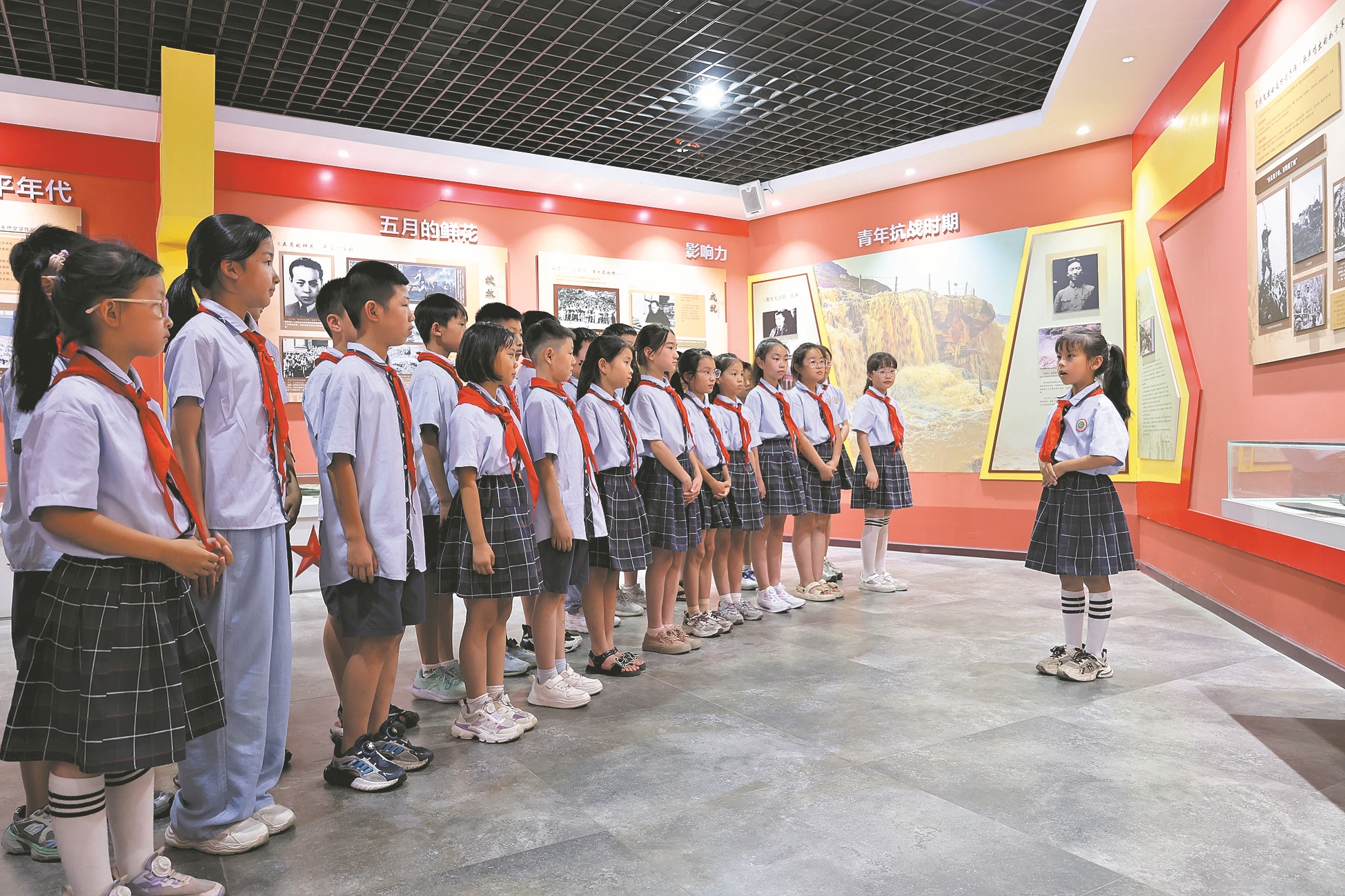 襄阳日报讯(全媒体记者姜雁冰 通讯员张子纬)6月24日,老河口市光未然小学三(2)班的30余名学生,聚集在该校光未然陈列馆,听该校小小红色讲解员讲述“光未然的故事”。