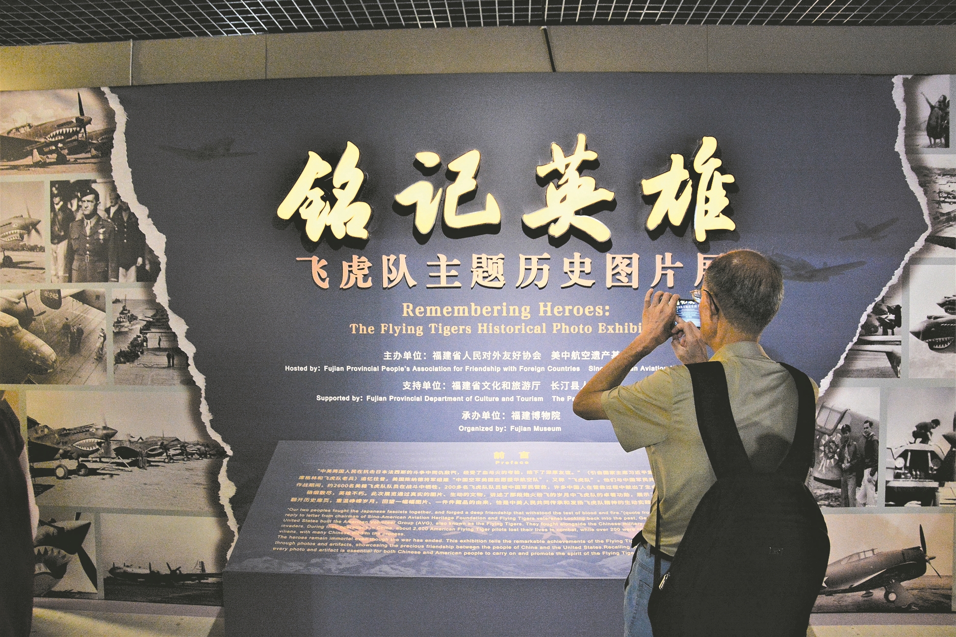 当日,“铭记英雄——飞虎队主题历史图片展”在位于福州市的福建博物院开展。展览通过数百张来自飞虎队老兵之手的珍贵历史照片和部分文物,集中展现“中国空军美国志愿援华航空队”(飞虎队)同中国军民一道为正义而战的壮举。
