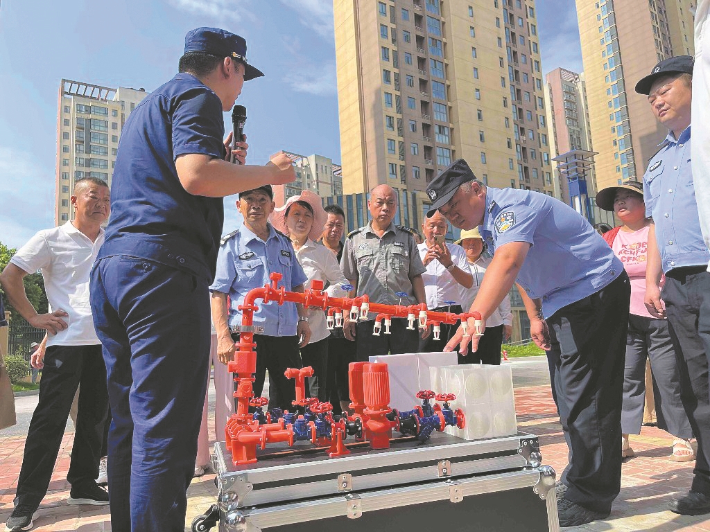 襄阳日报讯(全媒体记者陈莉莉 通讯员张灵洁 张磊)7月1日,襄州区肖湾派出所联合区消防救援大队,在园林小区举办“以演促练户户安”消防演练活动,吸引社区志愿者、居民积极参与。