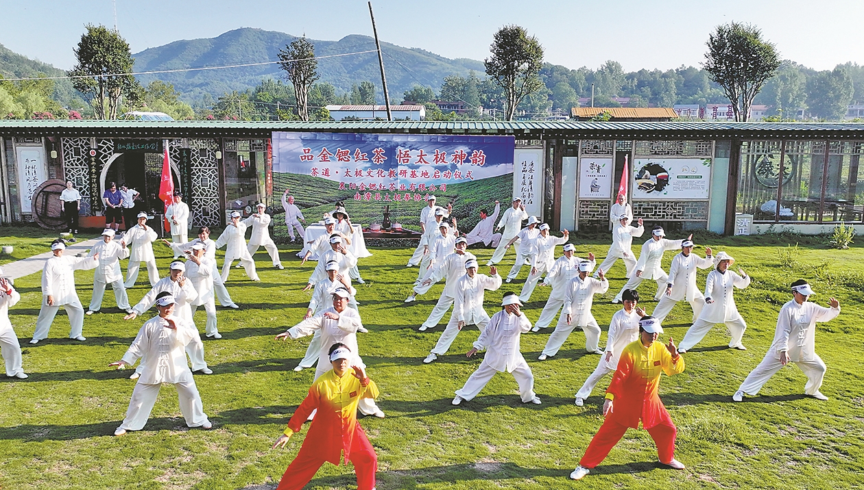 7月6日,南漳县太极拳协会、襄阳金锶红茶业有限公司在南漳县肖堰镇周湾村金锶红茶基地,联合举办茶道・太极文化教研基地揭牌仪式。