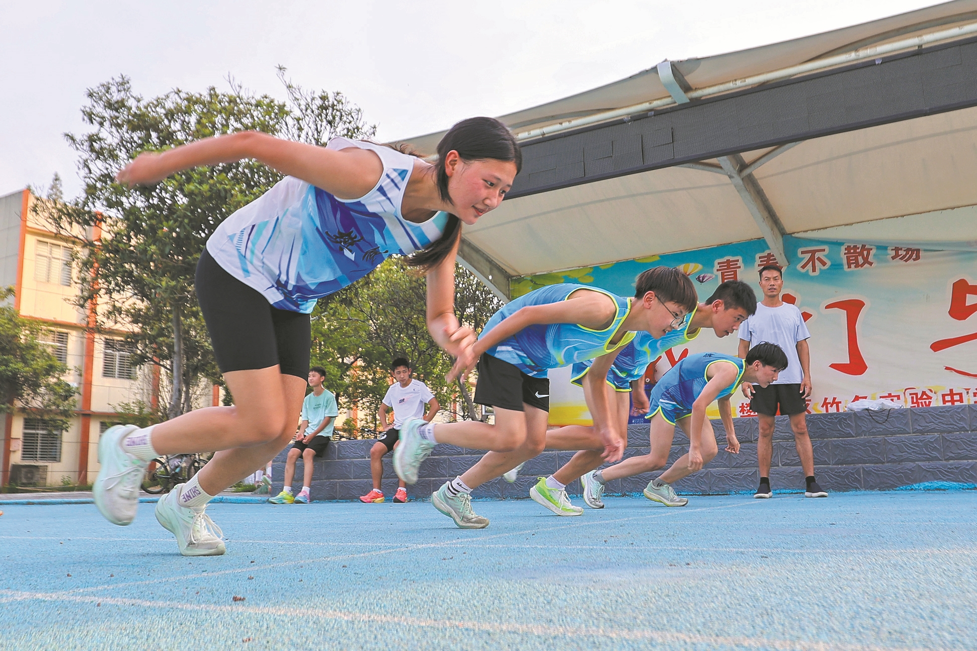 近日,在樊城区竹条实验中学运动场上,学生们在进行田径训练。