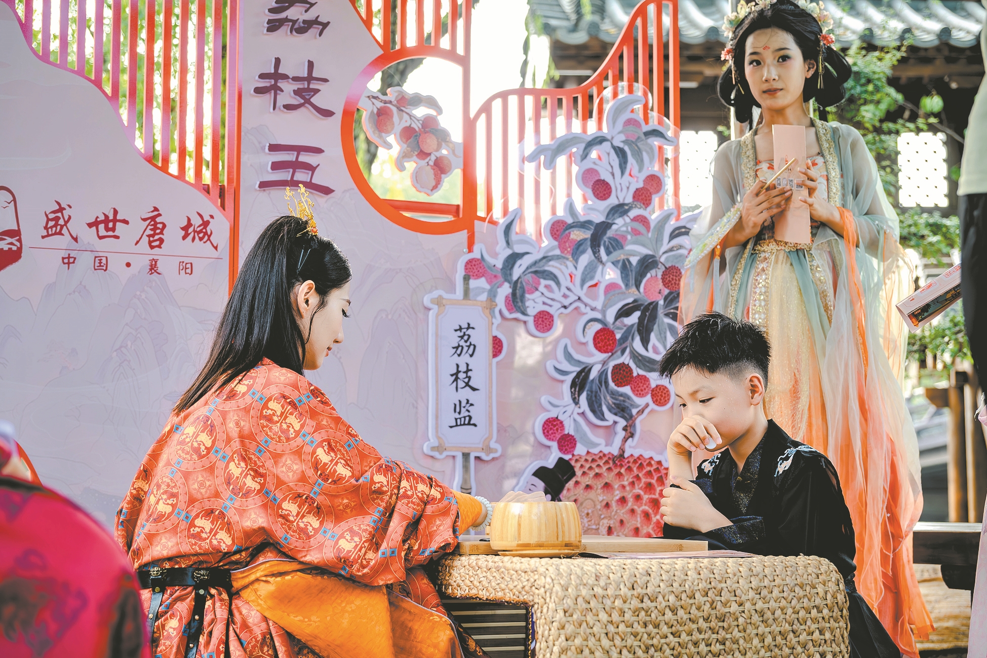 宜昌游客周女士领了一份,只见通关文牒上鲜嫩欲滴的荔枝格外打眼,长安迷荔、唐风投壶、词锋递荔、荔枝五子弈、长安镖局……每个任务下都留着用来集章打卡的空白处。猜谜、投壶、五子棋、飞花令、飞镖……每闯过一关即可在“荔行天宝,通关文牒”上盖一枚印章,集齐所有印章即可获得景区提供的相应礼品。周女士直呼:“电影《长安的荔枝》火热上映,景区推出的玩法也很有趣,这次的襄阳之行超值了!”