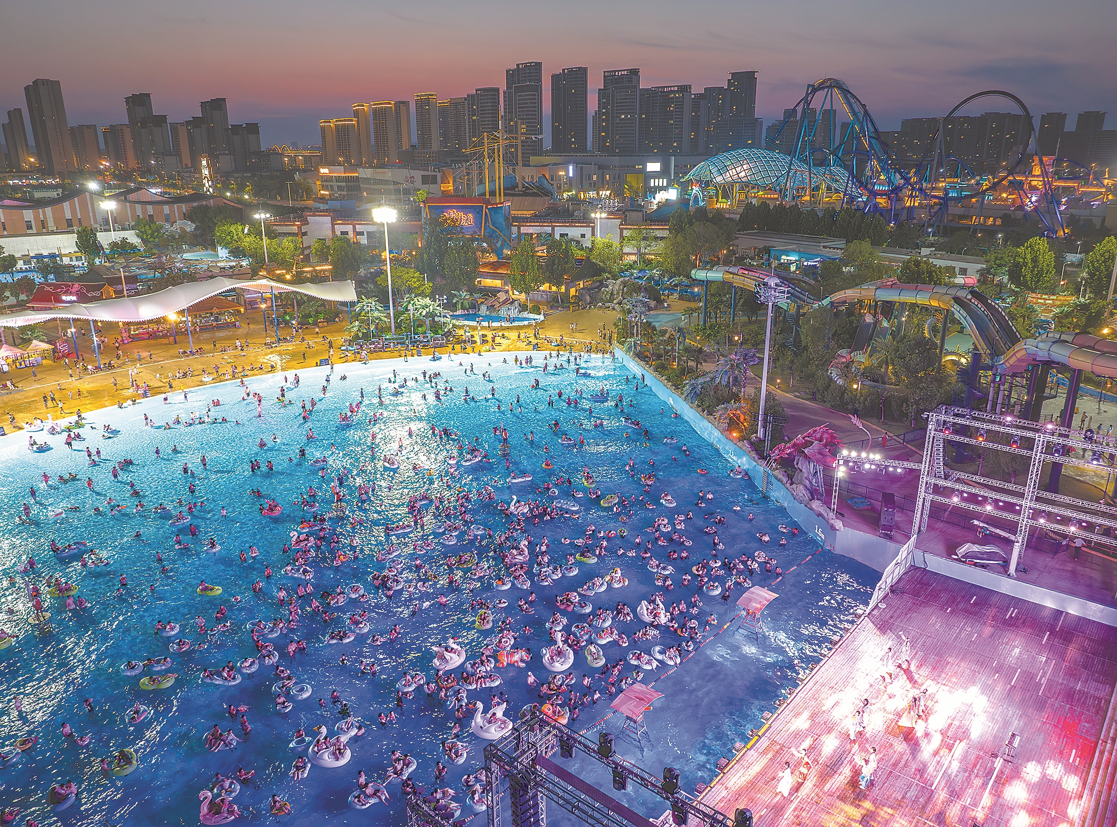 7月19日,游客在襄阳华侨城奇梦海滩水乐园戏水游玩,在欢声笑语中尽享清凉一“夏”。