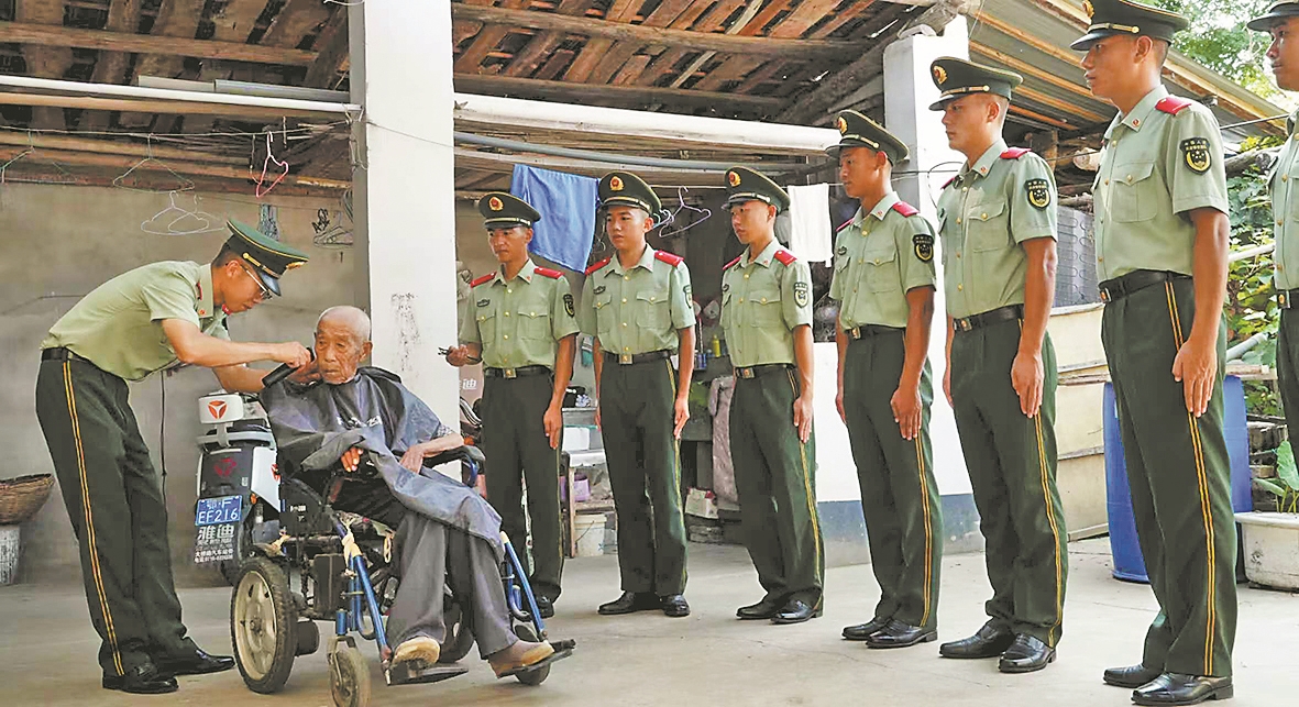近日,老河口市人武部和驻地武警战士代表来到97岁老兵徐云安家,深情慰问革命前辈,表达崇高敬意。聆听老兵讲述烽火岁月,汲取榜样力量,让红色基因和光荣传统代代相传。