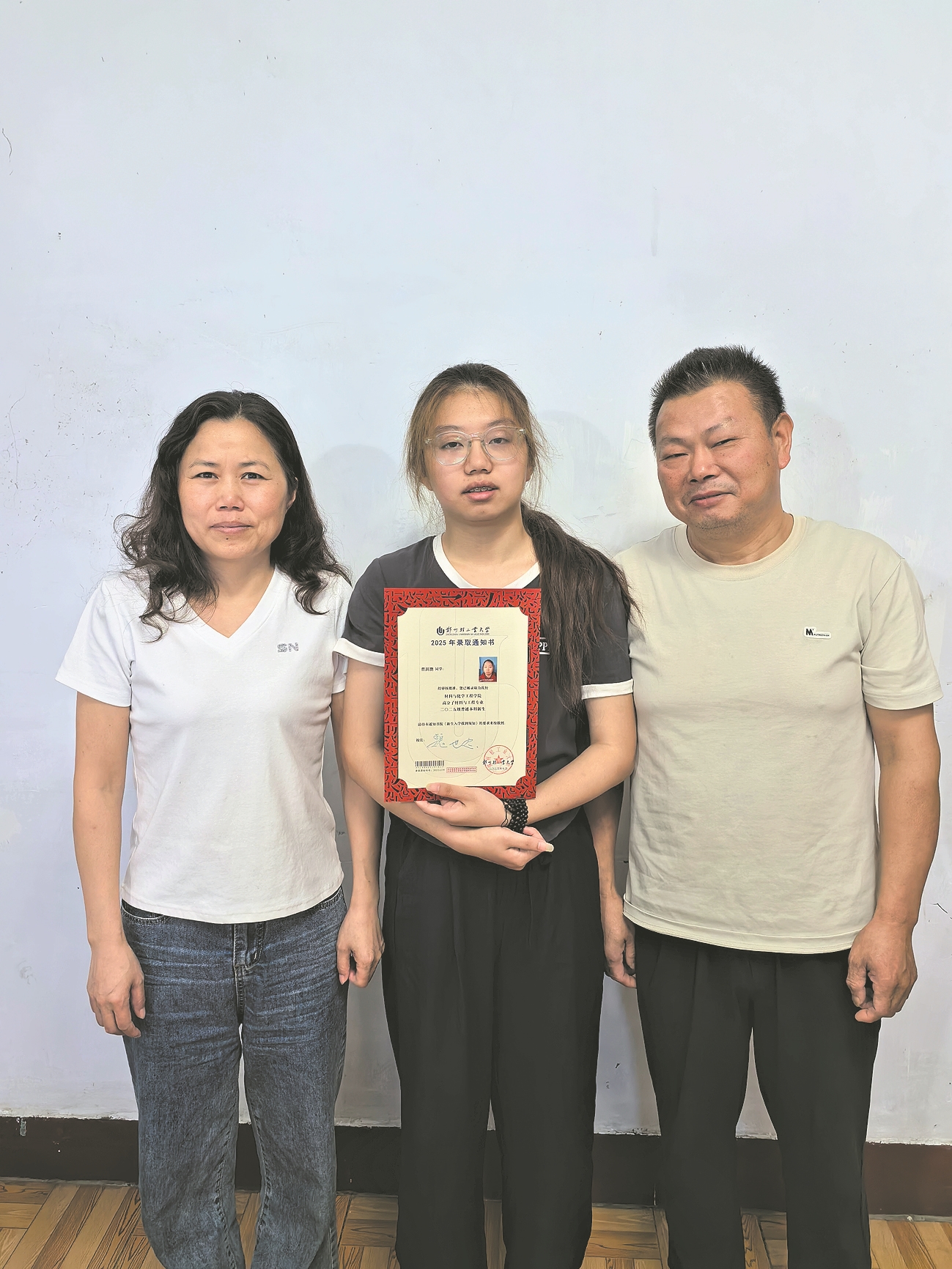 通过3年的不懈努力,曹澍灔考上了郑州轻工业大学。录取通知出来的那一天,正在工地上打工的父亲竟高兴得蹦了起来,在屋子里连转了好几个圈。那一天,他破例没有加班,提前回了家。见到女儿的时候,腼腆的父亲罕见地拥抱了女儿:“孩子,你太争气了。”
