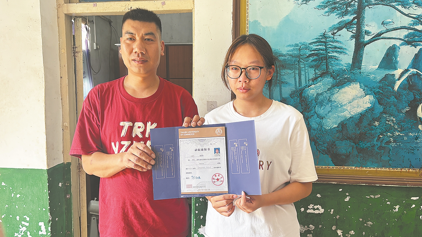 查高考成绩时,王雨彤紧张到彻夜难眠,当屏幕上出现569分时,她哭了。8月4日,王雨彤收到来自天津商业大学的录取通知书。在母亲的床边,她将录取通知书上的内容一字一句读给母亲听。母亲虽不能言语,眼角却流出泪水,用尽全力给女儿最深情的回应。