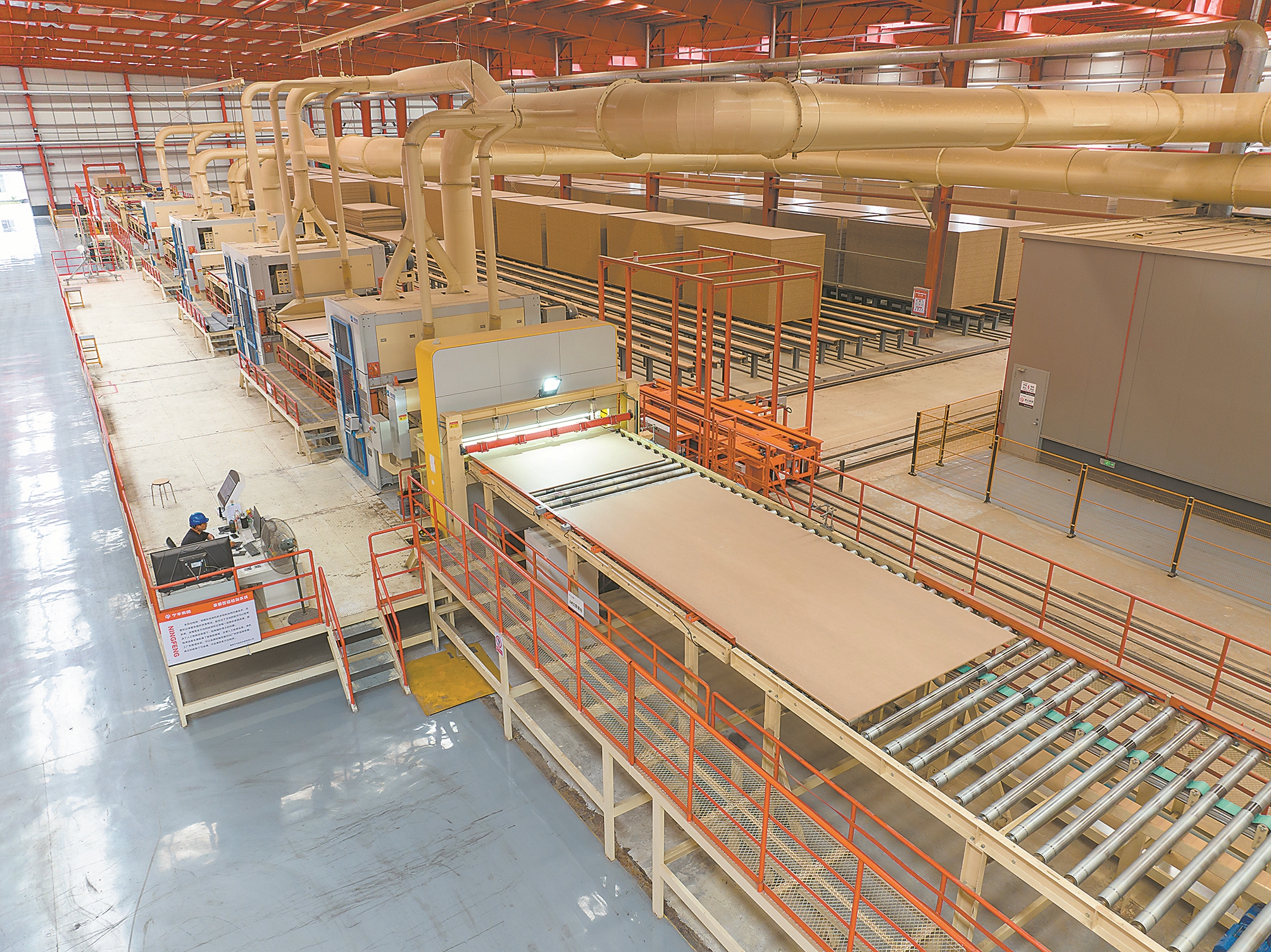 近日,在位于枣阳市的襄阳宁丰新材科技有限公司数字化车间,超强刨花板新材料稳定有序生产。