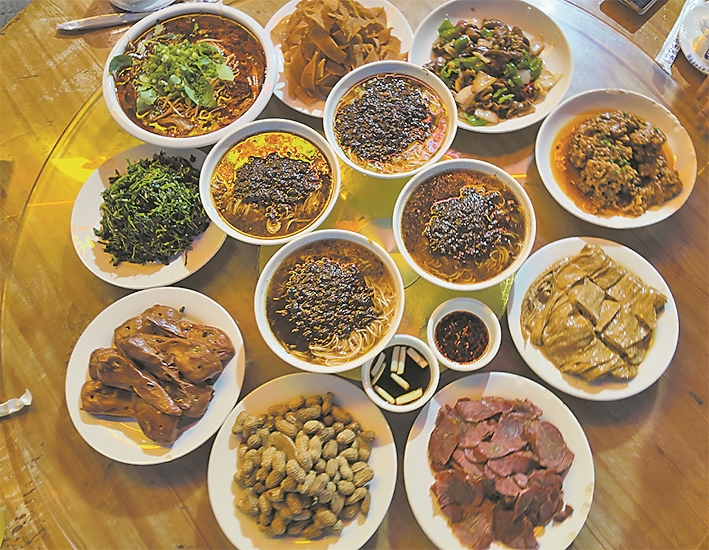 在襄阳,名气大的美食不仅有襄阳牛肉面,还有枣阳琚湾酸浆面。一到傍晚,人们三五成群聚在一起品尝着酸浆面,烫豆芽香辣开胃、卤豆皮软糯劲道,还有卤豆筋、卤牛肉、豆皮卷肉……最后一人来一碗酸浆面,特别爽口。