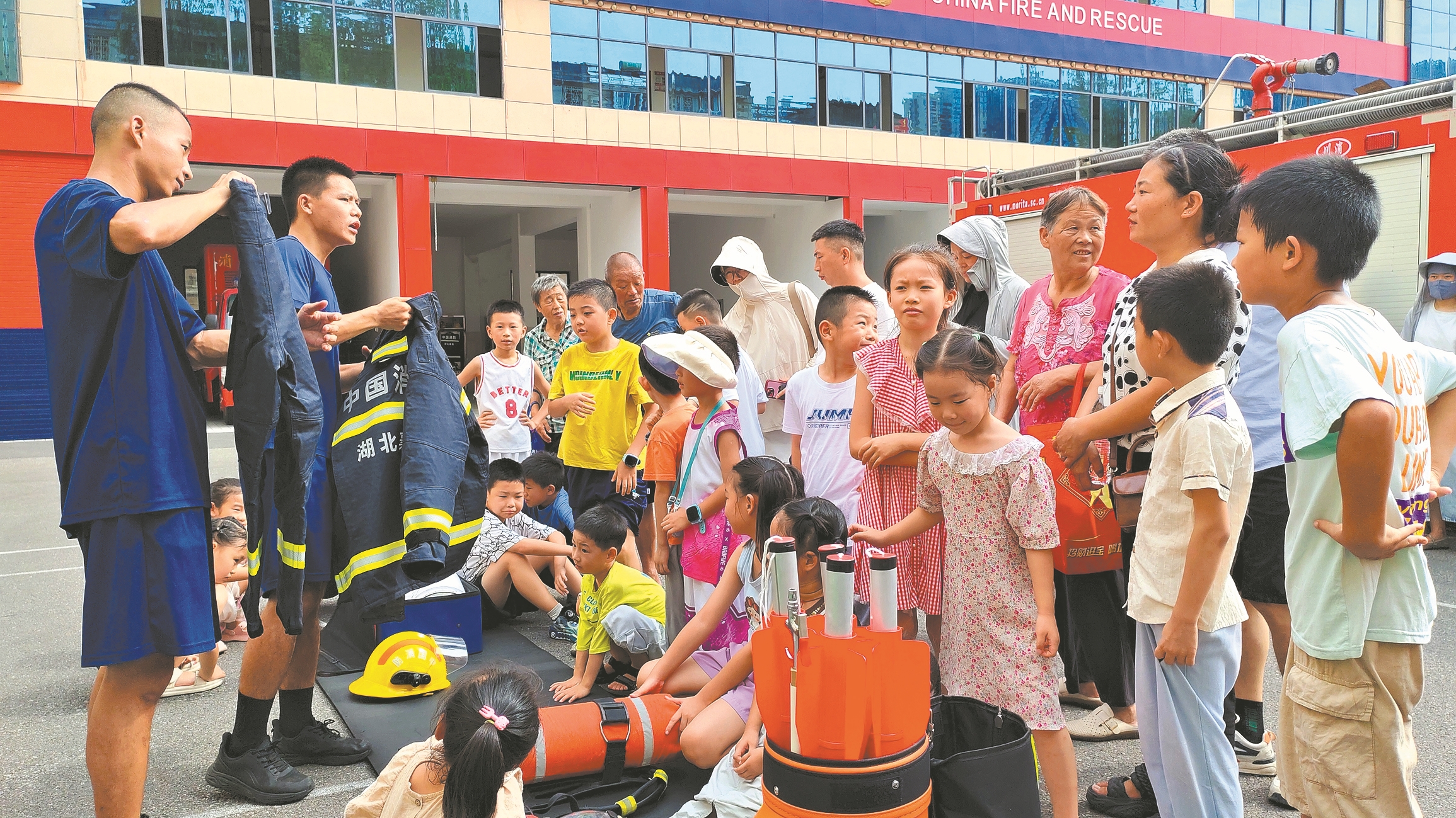 近日,军工社区2025年“追风少年”暑期班的孩子们在社区工作人员和志愿者带领下,来到区消防救援大队,沉浸式学习消防安全知识。