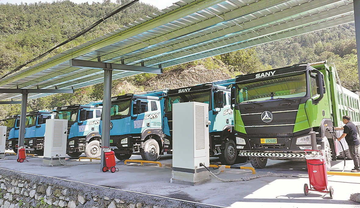 近期,保康县磷矿区40辆电动重卡全面替代柴油车,实现零排放静音运输。保康县供电公司持续加大充电桩及电网建设投入力度,助力矿区绿色运输。