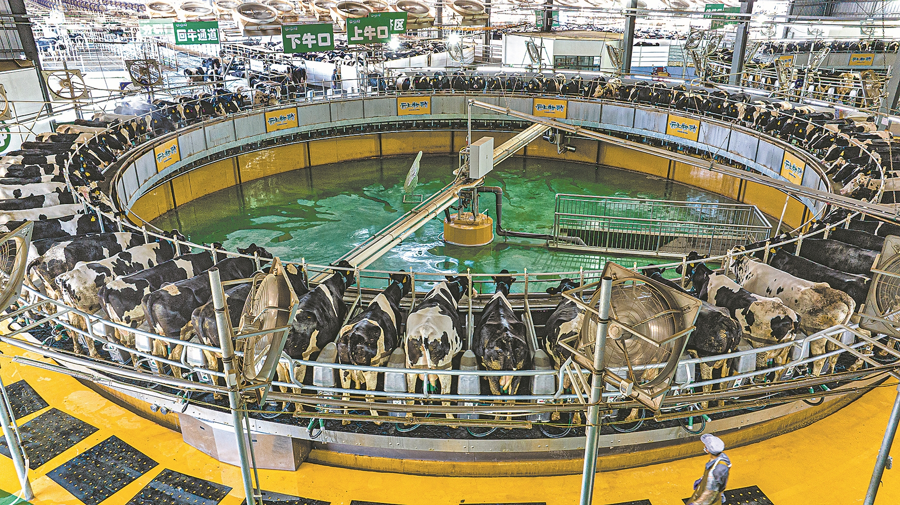 8月22日,位于南漳县的云上牧歌(襄阳)国际农业科技有限公司万头奶牛智慧产业园挤奶车间内,荷斯坦牛分批进入80位转盘挤奶机,日产鲜奶130吨。在这里,奶牛佩戴智能脖环,实时监测健康数据,实现精准喂养。产业园配套青贮饲料加工、粪污沼气发电等绿色循环系统。目前,园区正建设乳制品深加工项目,打造“光伏+乳业”示范样板,构建从牧场到市场的完整产业链。