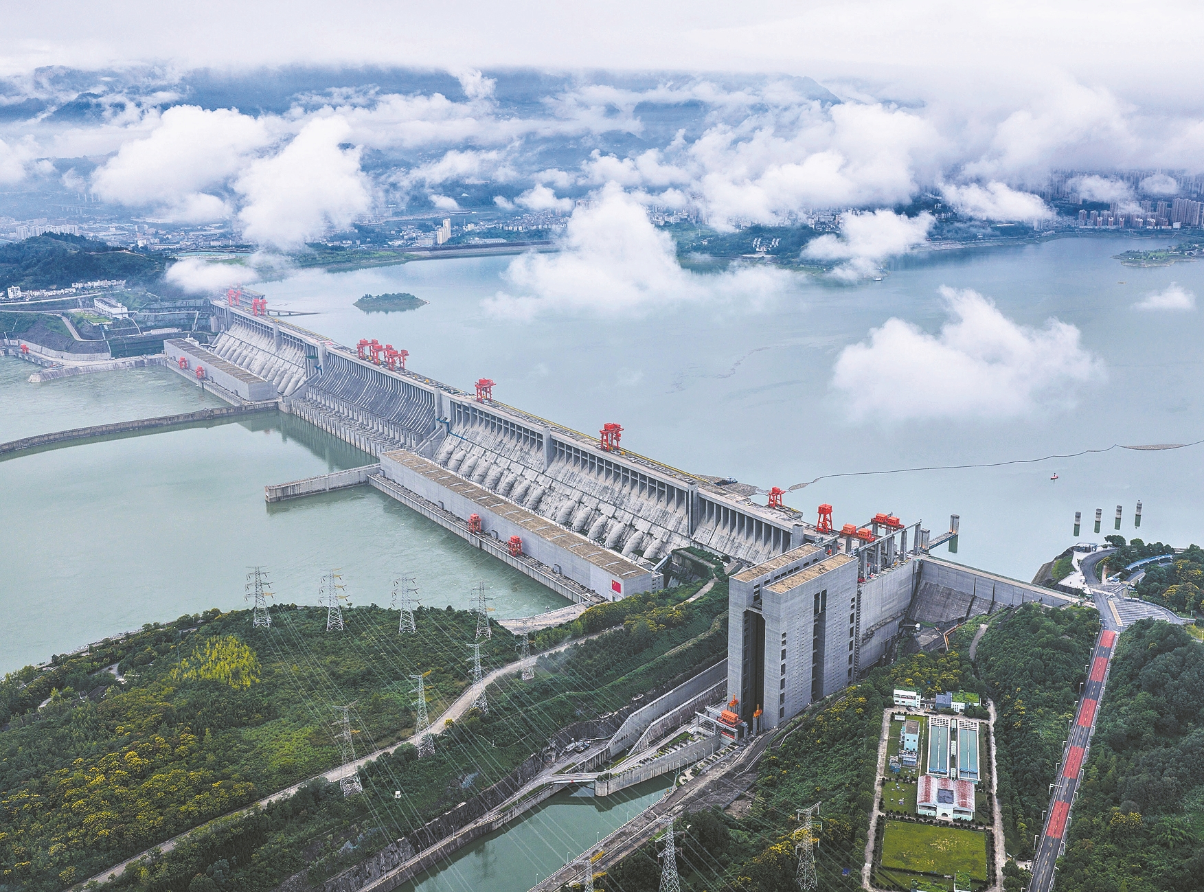 9月11日,在湖北省宜昌市拍摄的三峡水利枢纽工程(无人机照片)。