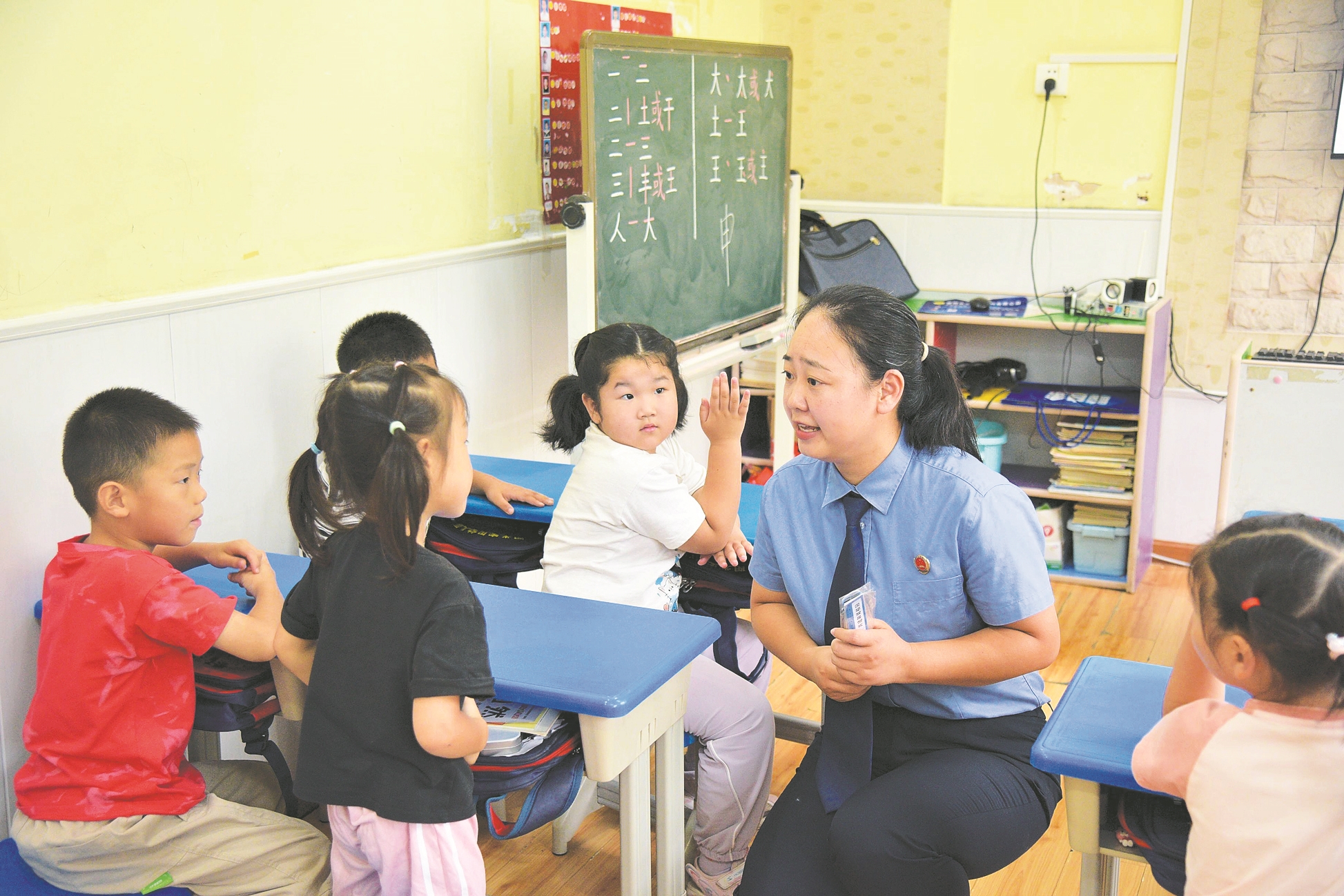 9月10日上午,襄城区检察院未检干警化身法治老师,走进襄城区阳光宝贝幼儿园,为孩子们上了一堂生动有趣的法治启蒙教育课。干警申晓婷结合幼儿特点,用充满童趣的语言、色彩鲜艳的图画,通过图示讲解、互动问答、情景模拟等形式,将抽象的法律知识融入贴近生活的小故事。孩子们踊跃参与,在欢乐中播下法治种子。