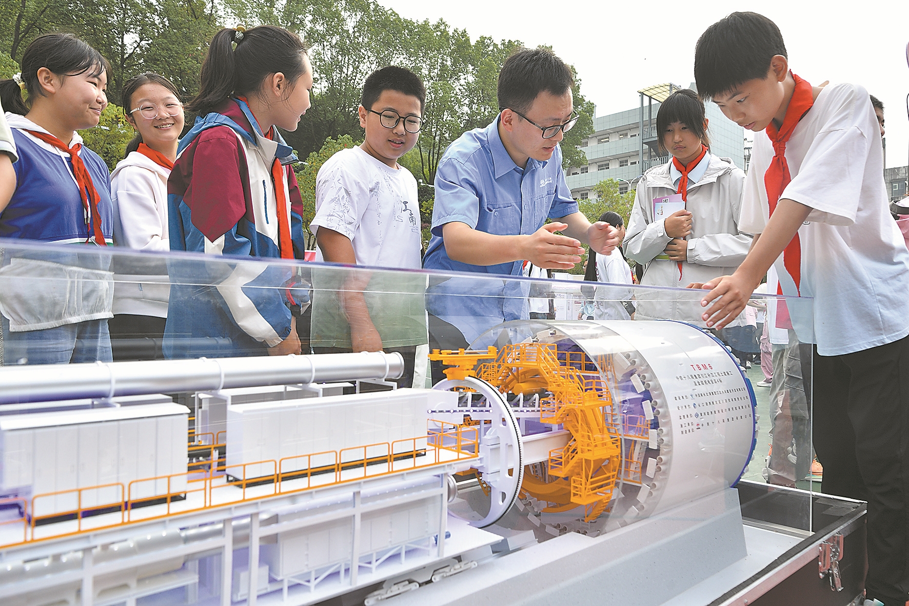9月16日,在保康县实验中学,学生们正在观看大国重器TBM模型。当日,保康县首个全国科普月主场活动在保康县实验中学举行。活动以“科技改变生活 创新赢得未来”为主题,通过科普讲座、科普实验秀、人形机器人表演等方式,激发学生创新创造意识和科学探索精神,让师生在互动与体验中感受科技的魅力。