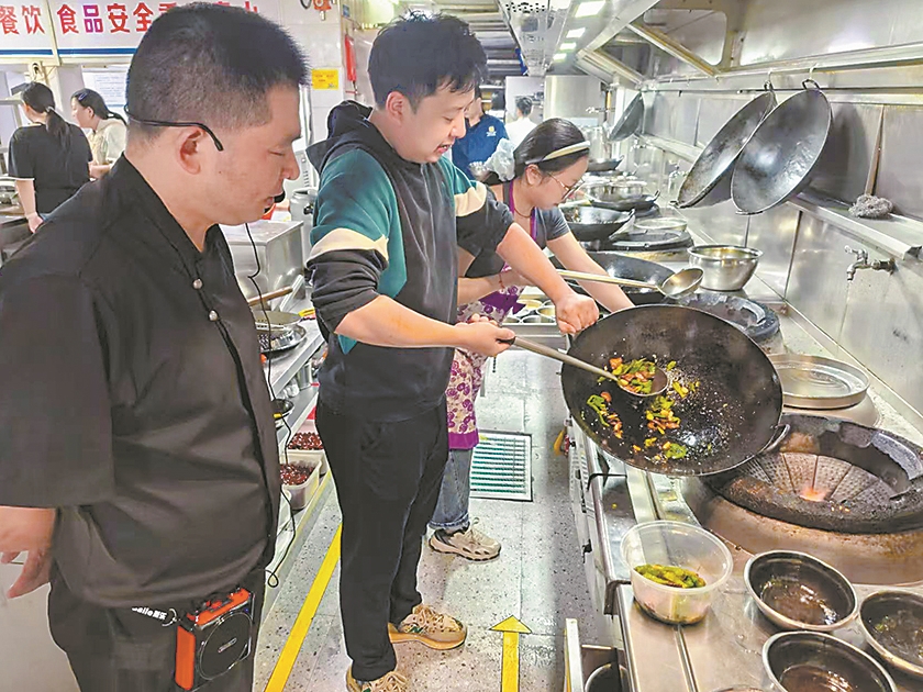 演示刚结束,灶台前立马热闹起来。切葱声、煎鱼声、欢笑声此起彼伏,香气弥漫整个操作间。不一会儿,一道道色香味俱全的葱烧武昌鱼纷纷出锅。学员高新玉兴奋地举起手机:“太香了,我要拍照给老妈看。以前总吃外卖,现在会煎鱼了,很有成就感!”