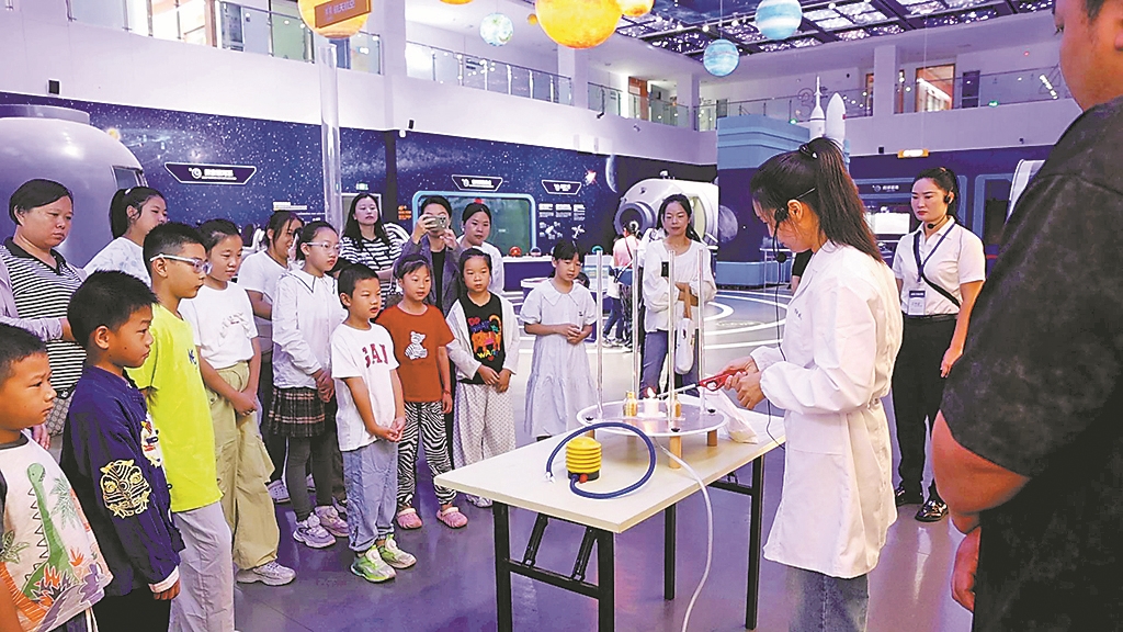在今年全国科普月活动期间,老河口市科协创新打造“科普游”系列活动,把科技馆、工业基地等转化为“流动科学课堂”,让青少年在实地体验中感受科学魅力,点燃创新热情。图为近日孩子们在科技馆参观。