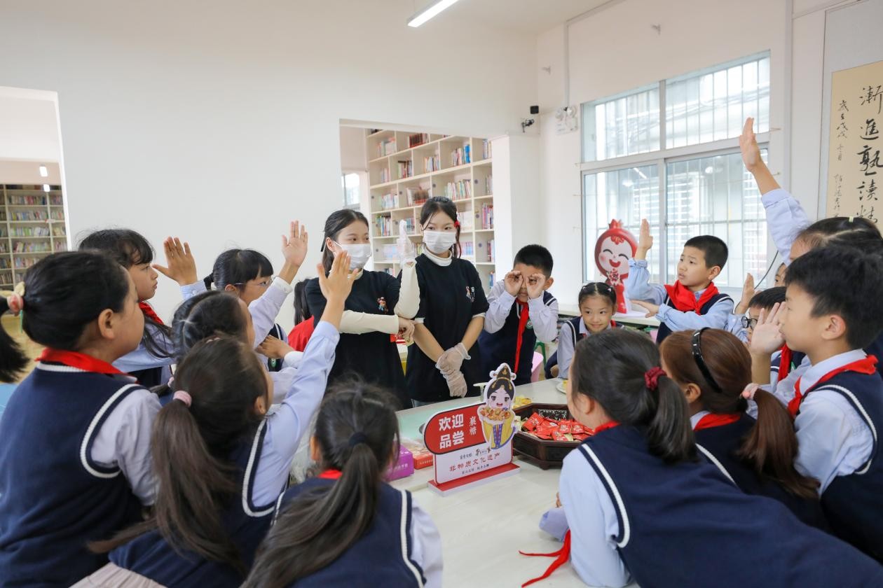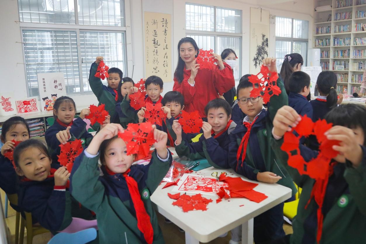 此次活动是襄阳市铸牢中华民族共同体意识宣传月系列活动之一,现场设置老河口木版年画、手工襄糖、非遗剪纸、月饼DIY等体验区及“中华民族一家亲”主题剪纸展,在沉浸式体验中,激发学生们对非遗文化的热爱、保护和传承意识。