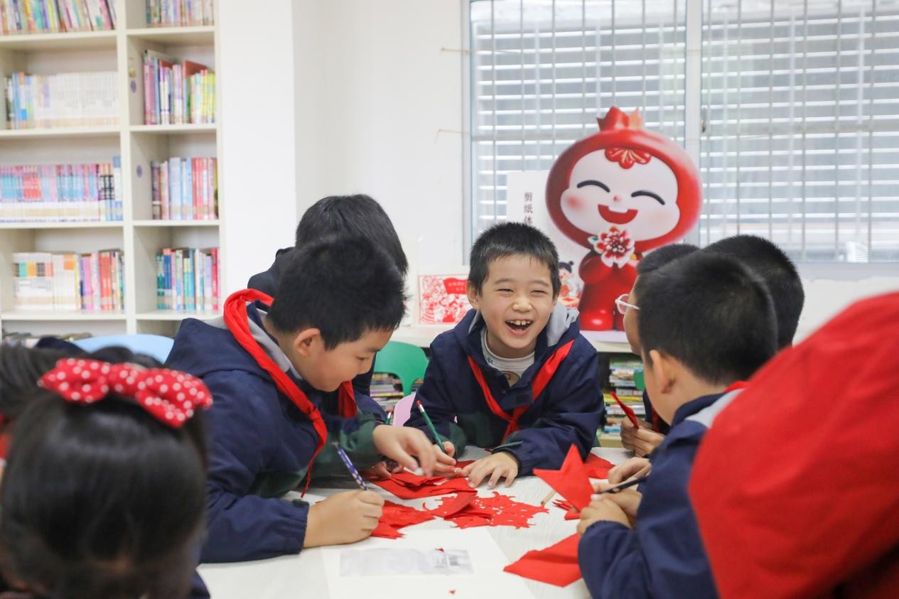 一张张普通的红纸,在剪纸体验区学生们的巧手下逐渐变成一个个鲜艳夺目的红石榴图案,每一份作品都承载着孩子们对民族团结的美好向往。