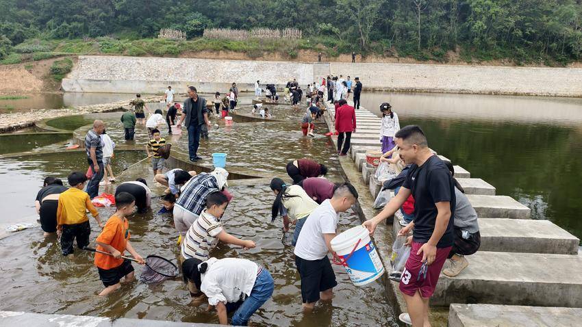 这个假期,大悟乡村旅游,既有新潮也有土味。国庆节,彭店乡太山村黎元洪故居景区举办摸鱼比赛,游客在水中摸鱼,体验童年的乐趣。