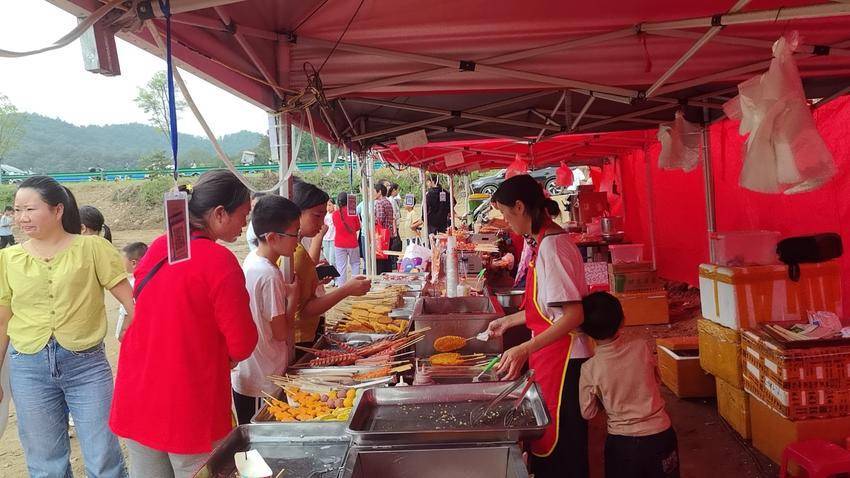 刘集镇“伴山金鼓·茶香营地”在景区举办茶叶等特色商品展销、美食嘉年华等主题晚会,让游客把“大悟味道”带回家,既卖风景又卖农副产品。