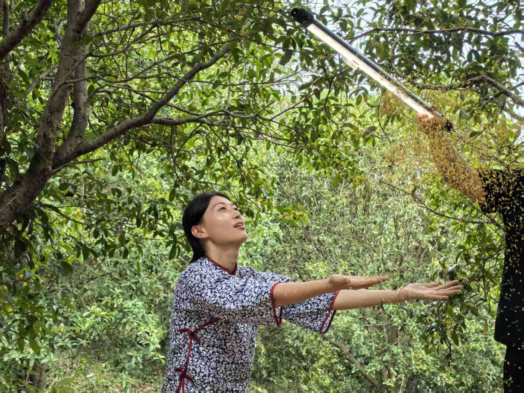 在“中国桂花之乡”核心区——咸安桂花镇,丰收的气息与桂花香交织。10月1日,央视一套《农耕探文明》栏目专程前来,记录当地村民打桂花的热闹场景。