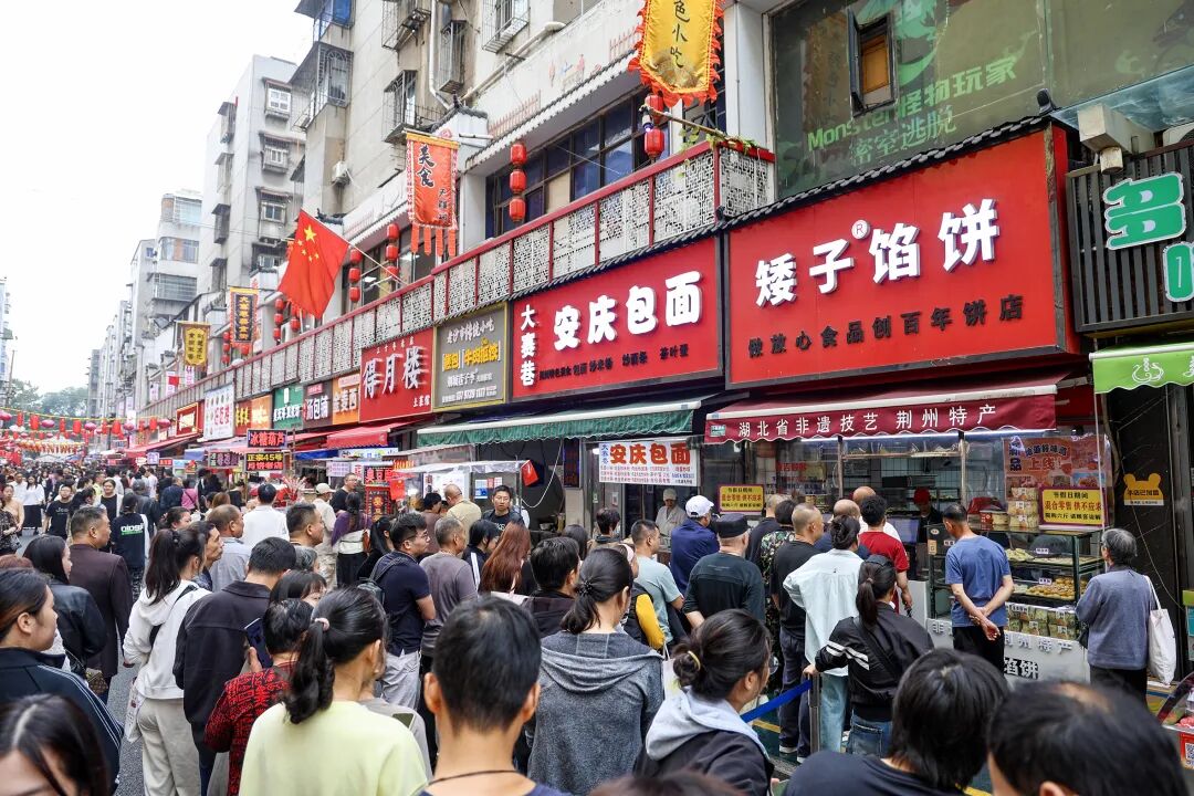 国庆期间的荆街化身为非遗文化与国潮新风交融的展示舞台,营造出穿越时空的沉浸式体验。