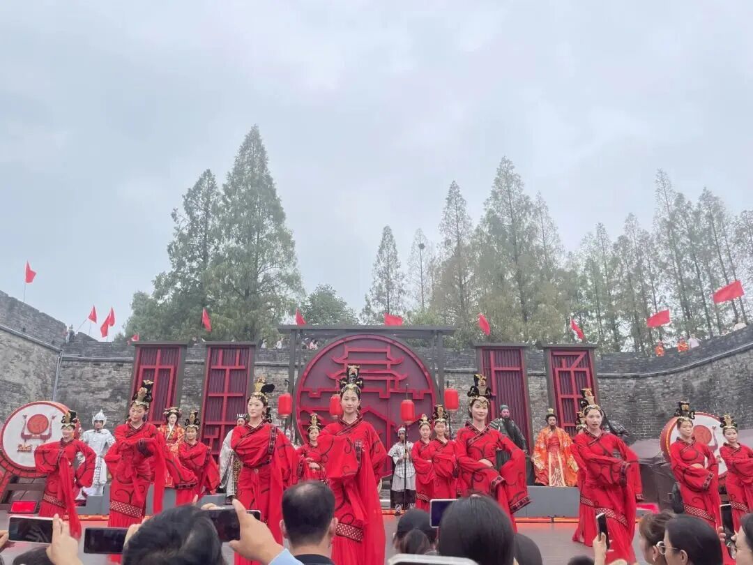 北门片区则通过“入城仪式”沉浸剧,再现三国场景,增强游客的历史参与感。《三国英雄路入城仪式》实景演出,凭借沉浸式的历史还原,成为假期 “爆款”。每天中午,荆州古城大北门朝宗楼下都挤满了前来观看的游客,现场里三层外三层,节日氛围浓烈。