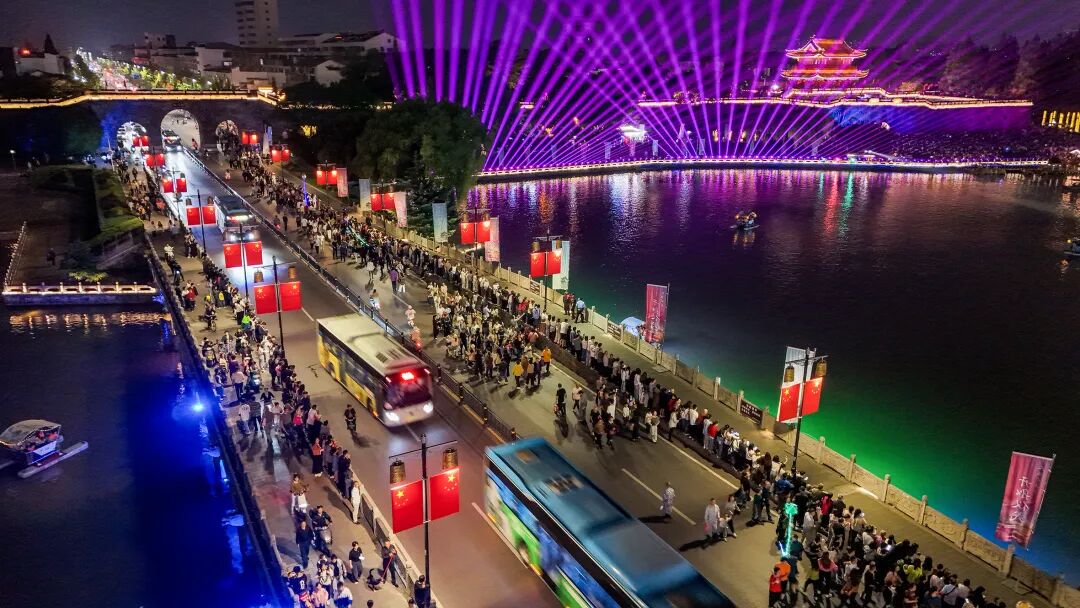 荆州古城依托深厚的历史底蕴与特色空间布局,在“双节”期间精心打造了“一区一品”的夜游体系。由荆州市融媒体中心、荆州市传媒集团精心策划的 “千年一城满风华”文旅项目全新上线。灯光秀、沉浸式演艺、无人机表演....东门、大北门、老南门,处处都为游客准备了惊喜。