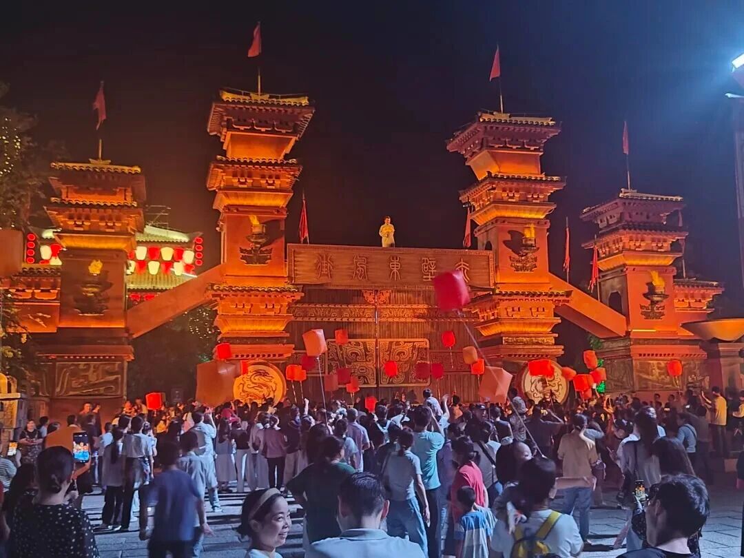 在三国赤壁古战场,游客不仅在摩崖石刻、拜风台等处聆听历史回响,还通过《借东风》实景剧、“桃园结义”“汉风竞技游园会”等沉浸式感受三国文化。夜幕降临,东风街灯火通明,随着战鼓擂响,1800年前的祈愿仪式重现,近万名游客手持孔明灯,一同点亮放飞。广东游客陈坚真说:“在这里体验到了三国的文化,感觉很好。”