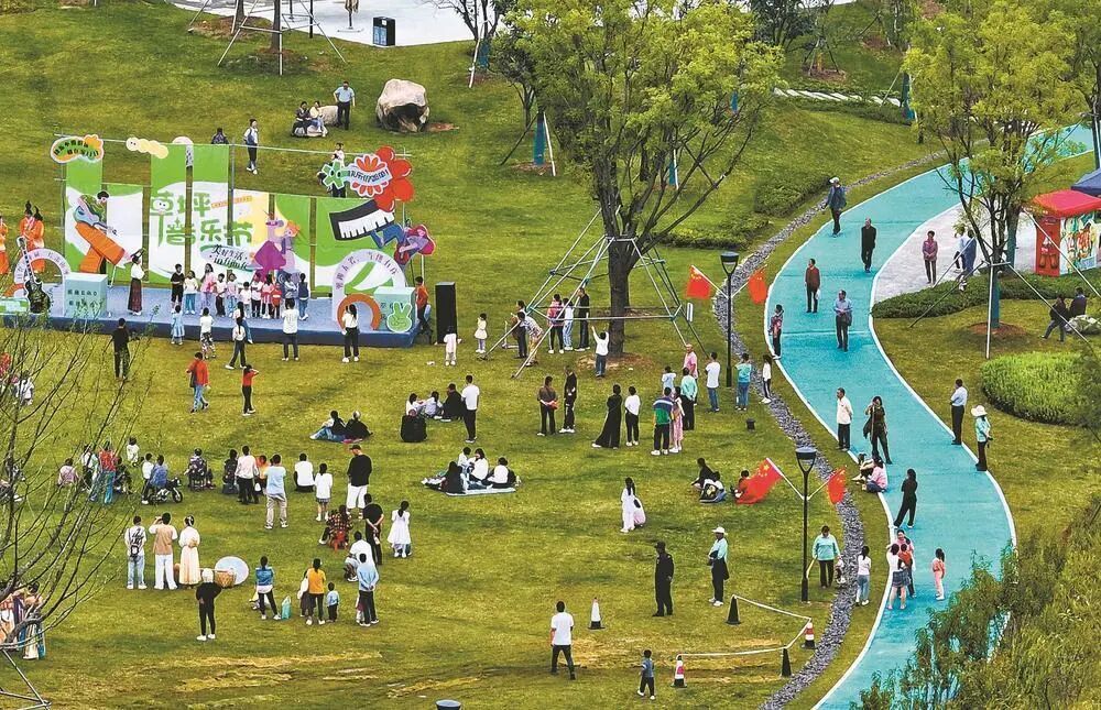 2023年“十一”期间,市民在襄水源公园游玩。记者谢勇摄