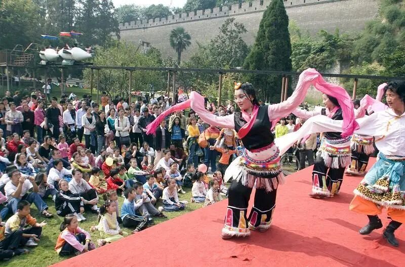 2008年10月1日,在襄阳公园,藏族歌舞表演吸引了众多游客。记者张文华摄