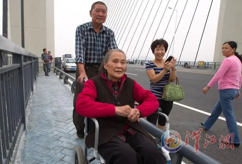 2013年10月2日,一名市民带着母亲来到卧龙大桥上,感受城市的变化。记者张文华摄