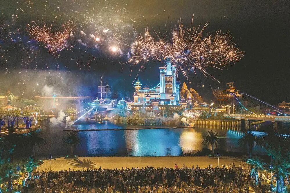 2022年10月1日,襄阳华侨城奇幻度假区举办“奇幻烟火 礼献祖国”大型烟火秀。记者杨东 通讯员孙可欣摄