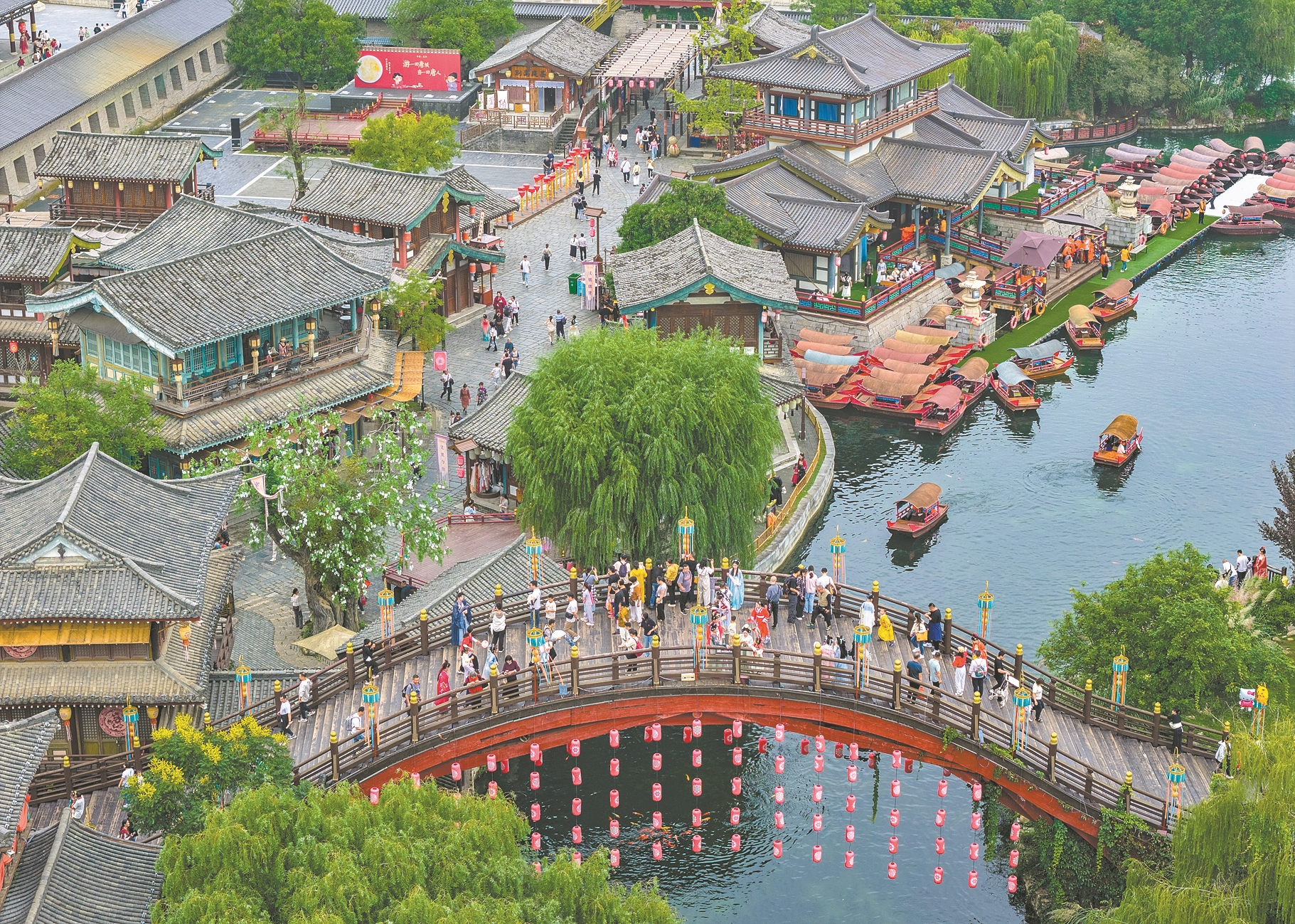 10月5日,游客在唐城景区游玩。国庆中秋假期,我市文旅市场火热,各大景区人潮涌动,“假日经济”消费活力全面释放。