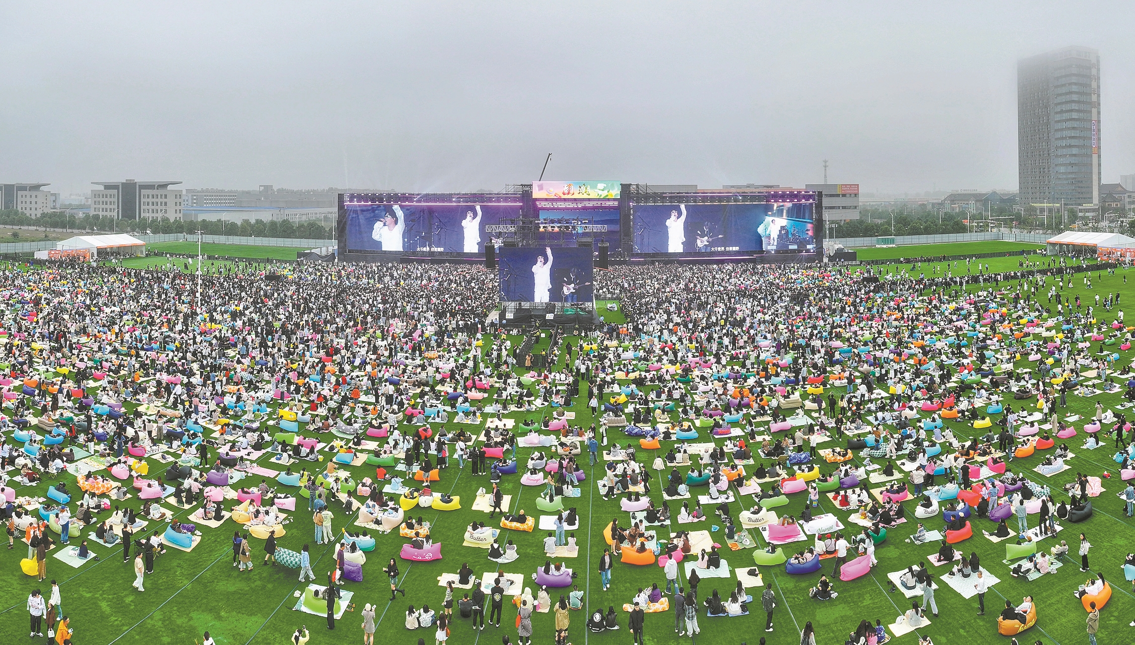 台上星光熠熠,创作型歌手薛之谦、《快乐男声》全国总冠军陈楚生领衔登场,携手跨界明星、实力流行乐队与当红女团现场献艺,为现场歌迷带来沉浸式音乐体验。如果说白天的演出是节奏轻快的序曲,那么夜幕降临后的盛典开启了这场音乐盛宴的高光时刻:光影在夜空中交织流转,歌迷们挥舞着彩旗,笑着、唱着,把满腔热情融进每一段合唱里。