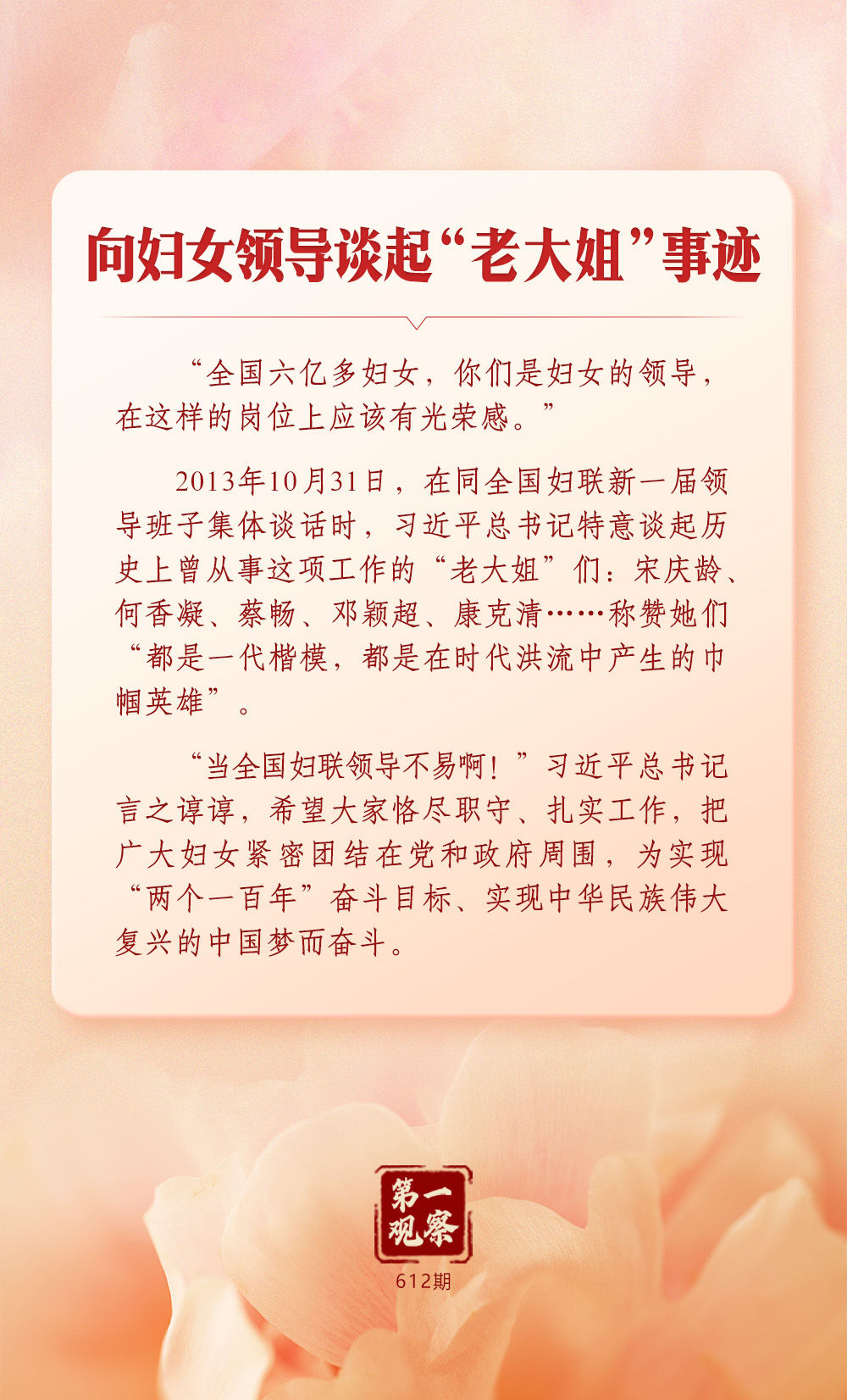 习近平总书记始终心系妇女事业发展。在全球妇女峰会即将召开之际,让我们一道深刻体悟这份一以贯之的牵挂与重视。