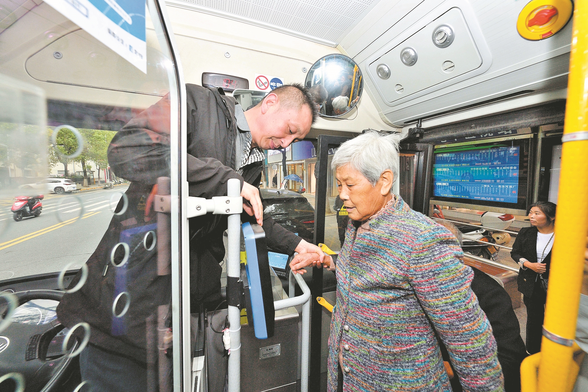 10月11日,在保康县城一辆公交车上,司机指导乘车的老年人“刷脸”。近日,保康县公交收费系统完成智能化升级,专门为老年人推出“刷脸乘车”服务,65周岁及以上老年人无需再持老年免费卡乘车,可通过人脸识别方式实现无卡乘车,也无需进行年度审验,长期有效。此举极大地方便了老年人的出行。