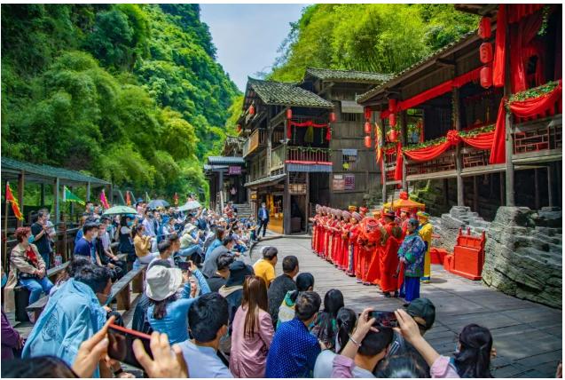更深入的体验在于非遗的活化。在景区的重点区域,土家撒叶儿嗬、长阳山歌等民俗文化表演,让游客在欣赏清江山水之余,感受到土家族文化的独特魅力。