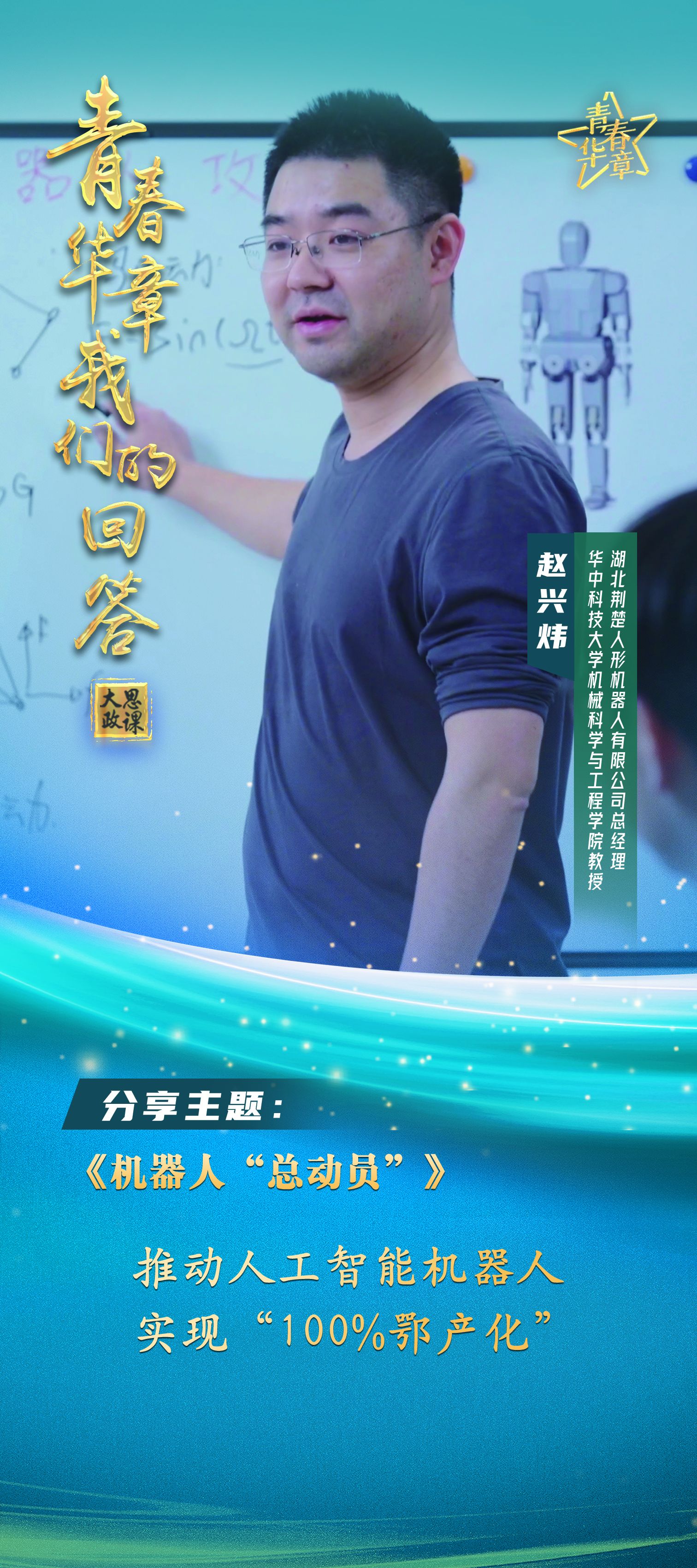 奋斗的故事引人入胜,榜样的力量激发共鸣,行走的青春别样精彩。青春的回答,从来不是纸上的空谈,而是脚下的丈量;思政的力量,也不是生硬的道理,而是与时代同频的共鸣。揆诸当下,武汉车谷江大女足二十载如一日携手共进、无悔拼搏、永不言弃,从连续5次夺得女超联赛冠军到实现国内赛场“全满贯”,从高校里的“学生军”到登顶亚洲的女足俱乐部,冲出亚洲、走向世界的背后是铿锵玫瑰青春风采的无声证言;赵兴炜教授和团队以科技自立自强勇攀高峰,让荆楚机器人成为中国智造的硬核力量,勾勒出青年学子创新奋进的青春足迹;谢先启院士把“爆破”从“粗放”淬炼成“精细”,从“技术”升华为“国之利器”,让青春力量与家国情怀同频共振……以热血赴山河、以青春担使命,当更多青年从“听故事的人”变成“讲故事的人”,以奋斗之姿讲述着中国青年的青春梦、中国梦、民族梦,在时代潮流中镌刻无悔足迹,这是青春的风采,是青春的誓言,更是青年的答案。