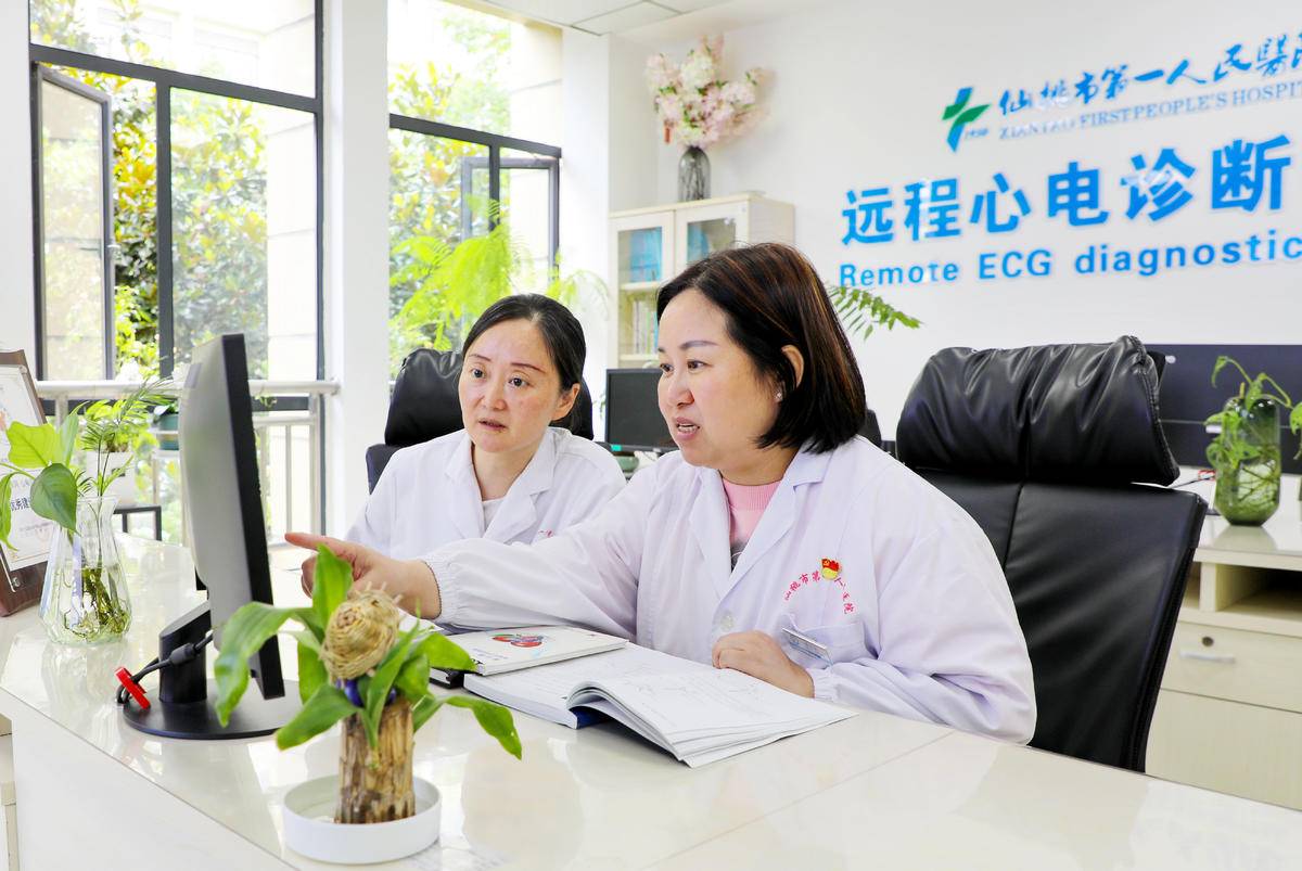 仙桃市第一人民医院远程心电诊断中心医护人员,正在远程判读长埫口镇一患者诊断结果,给出合理治疗方案。(视界网 刘贤双 摄)